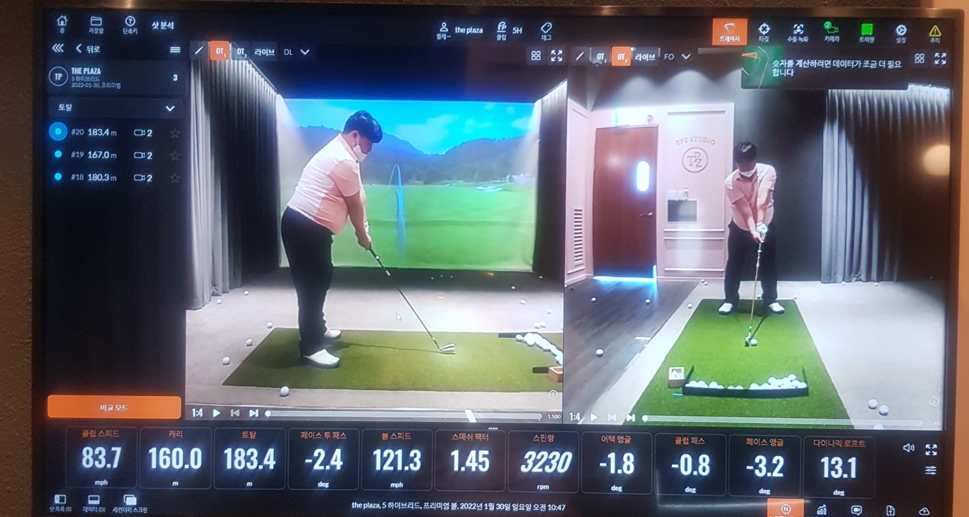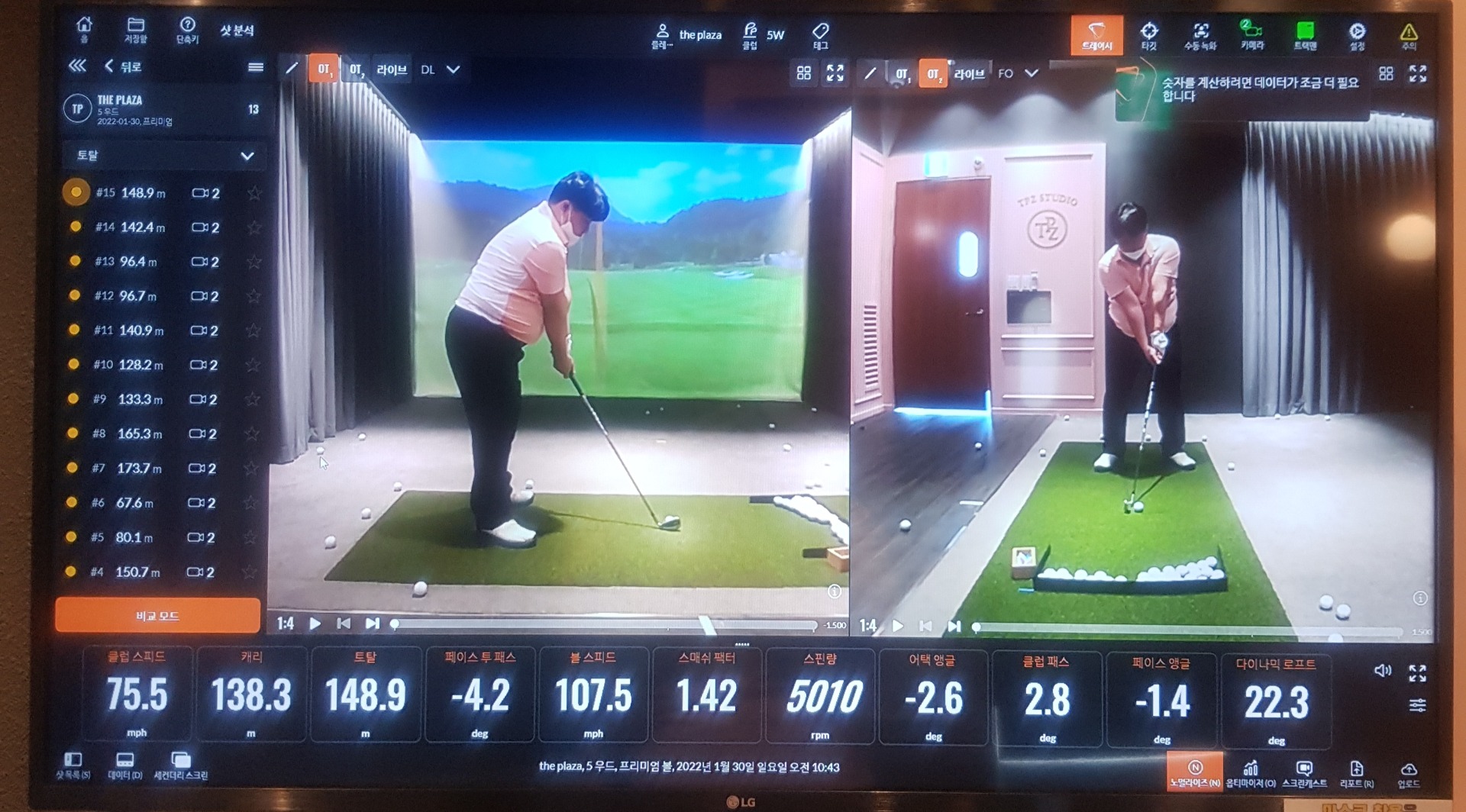 트랙맨 어플사용등등하려 했는데 걍 치다보니 시간이 훌쩍 잘 지나가네요.