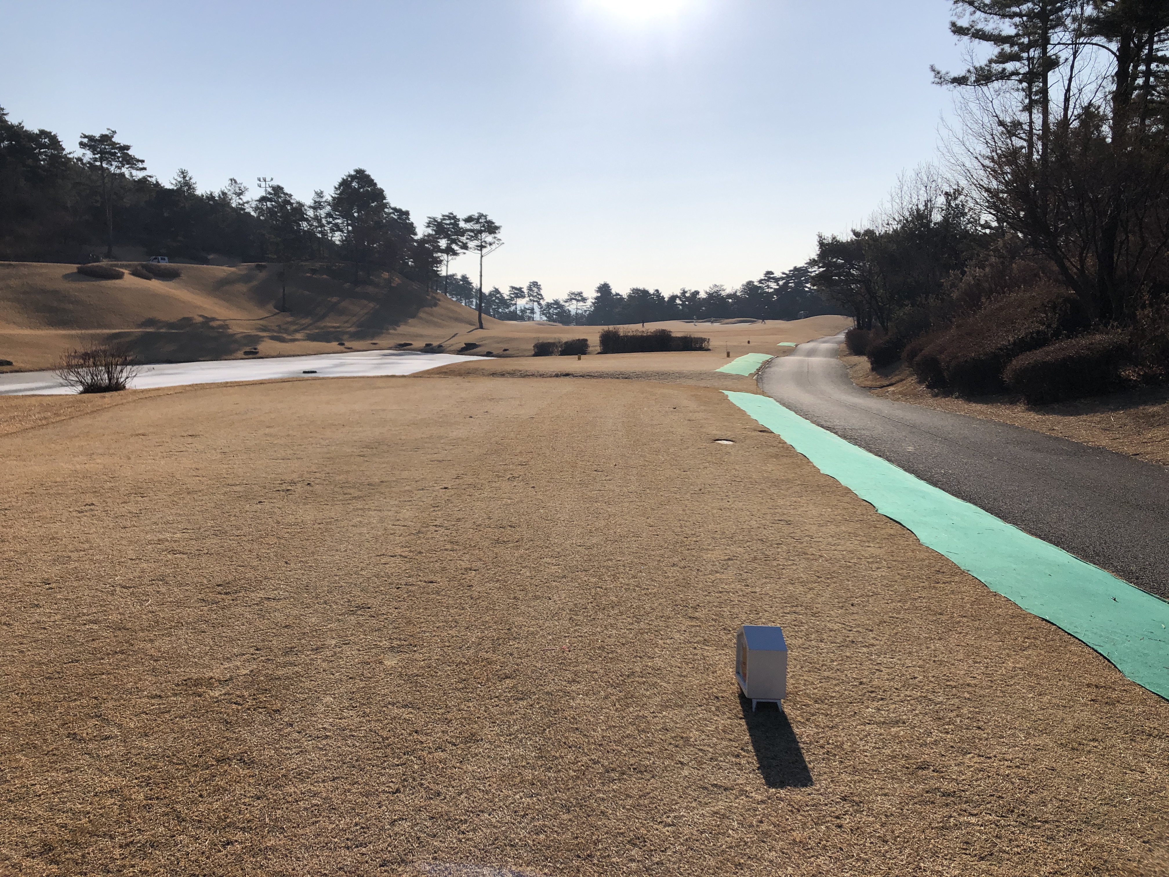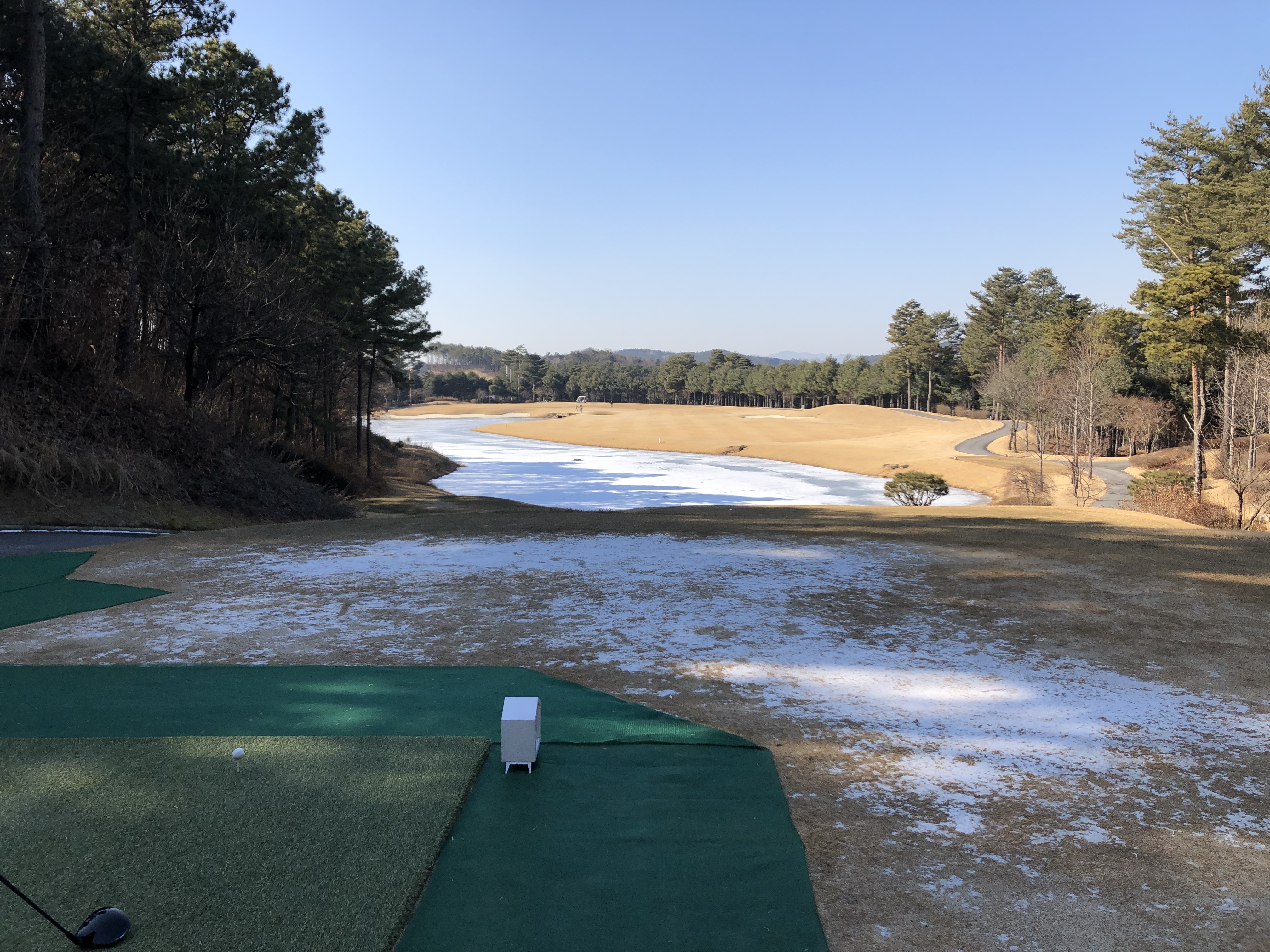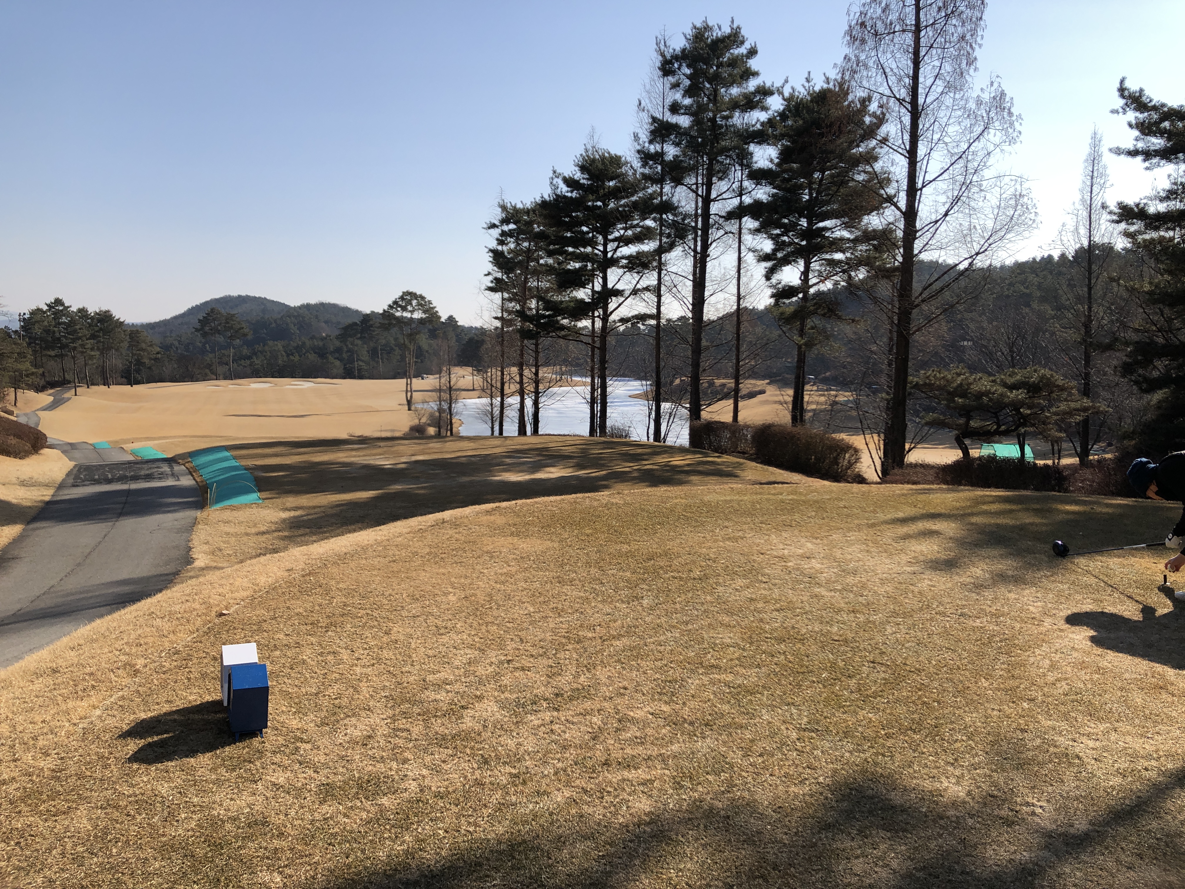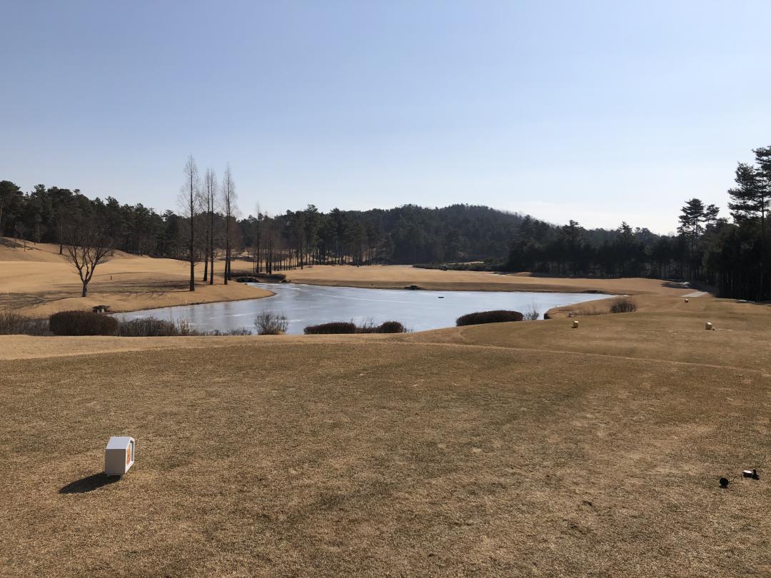 세라 4번홀입니다. 짧은 내리막 파4홀이라 날씨 좋을때는 원온 도전을 하곤 했습니다만 오늘은 드라이버 컨디션이 별로라... 그냥 아이언 티샷을 합니다. 동반자 한명은 훅에 가까운 드로우가 걸려서 죽은줄 알았는데 얼어붙은 해저드를 건너 그린사이드 벙커까지 공이 갔습니다.