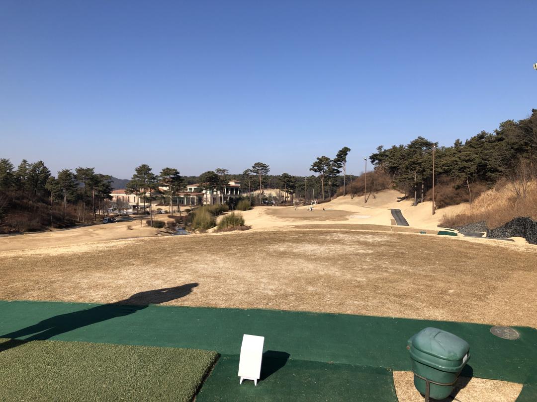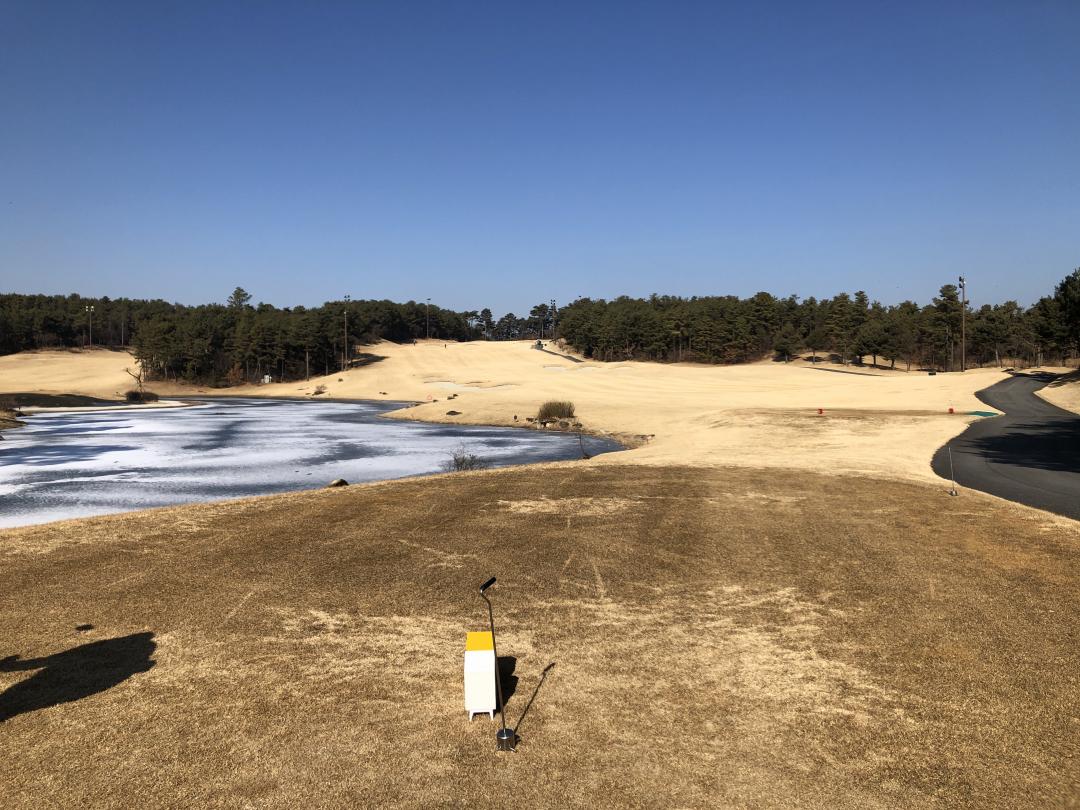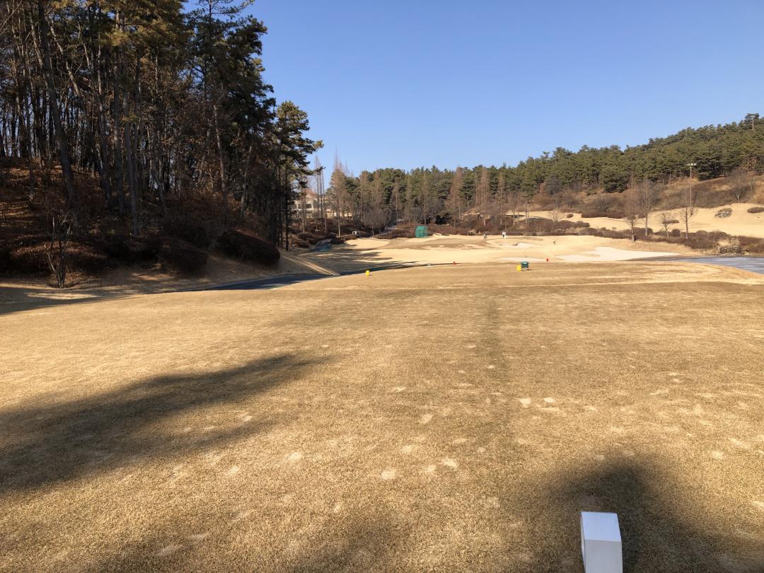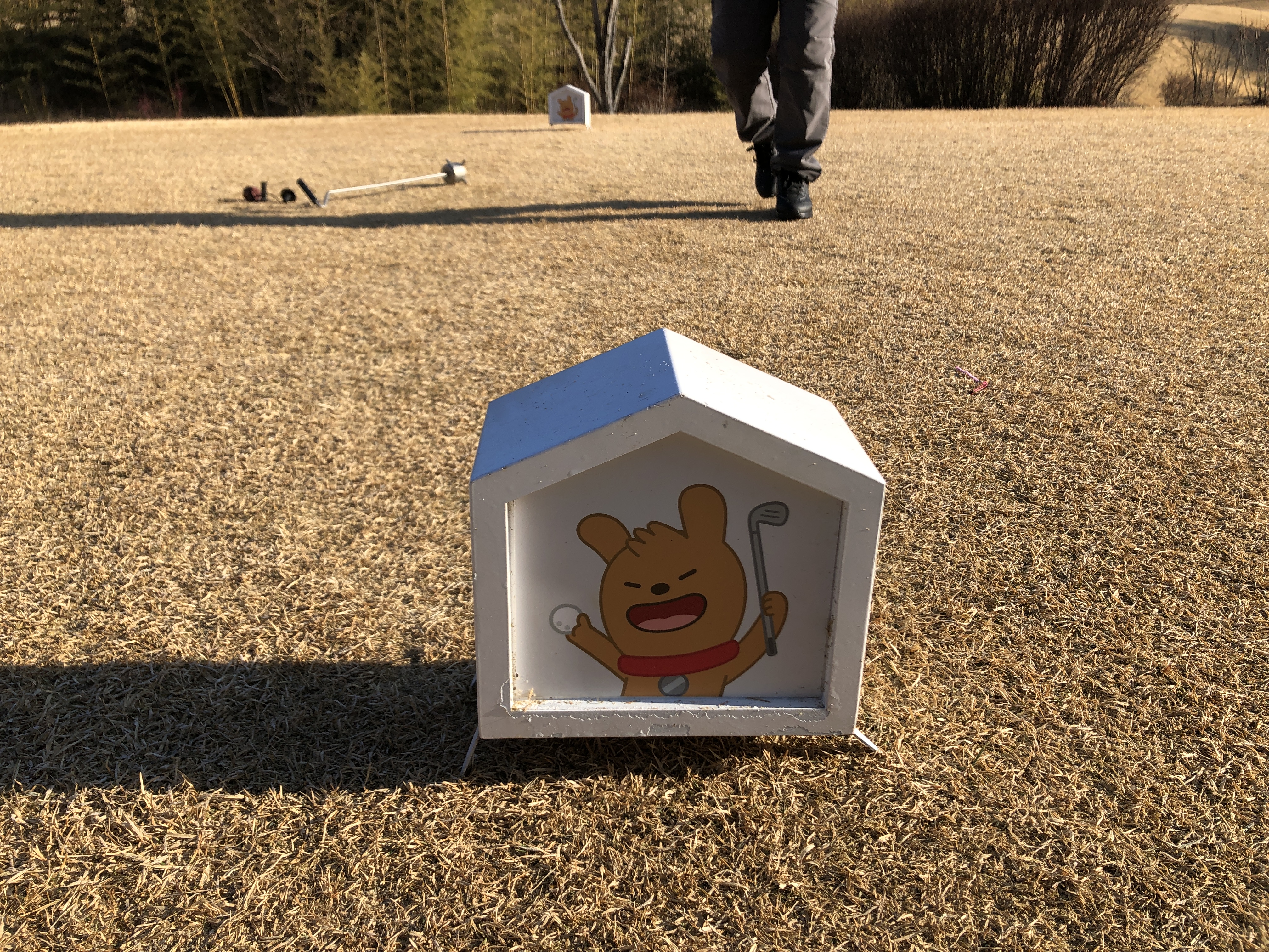 50미터 앞 어프로치라고 해도 그린이 얼어있기 때문에 어디에 떨어뜨려야 할지 아직 감이 없습니다.