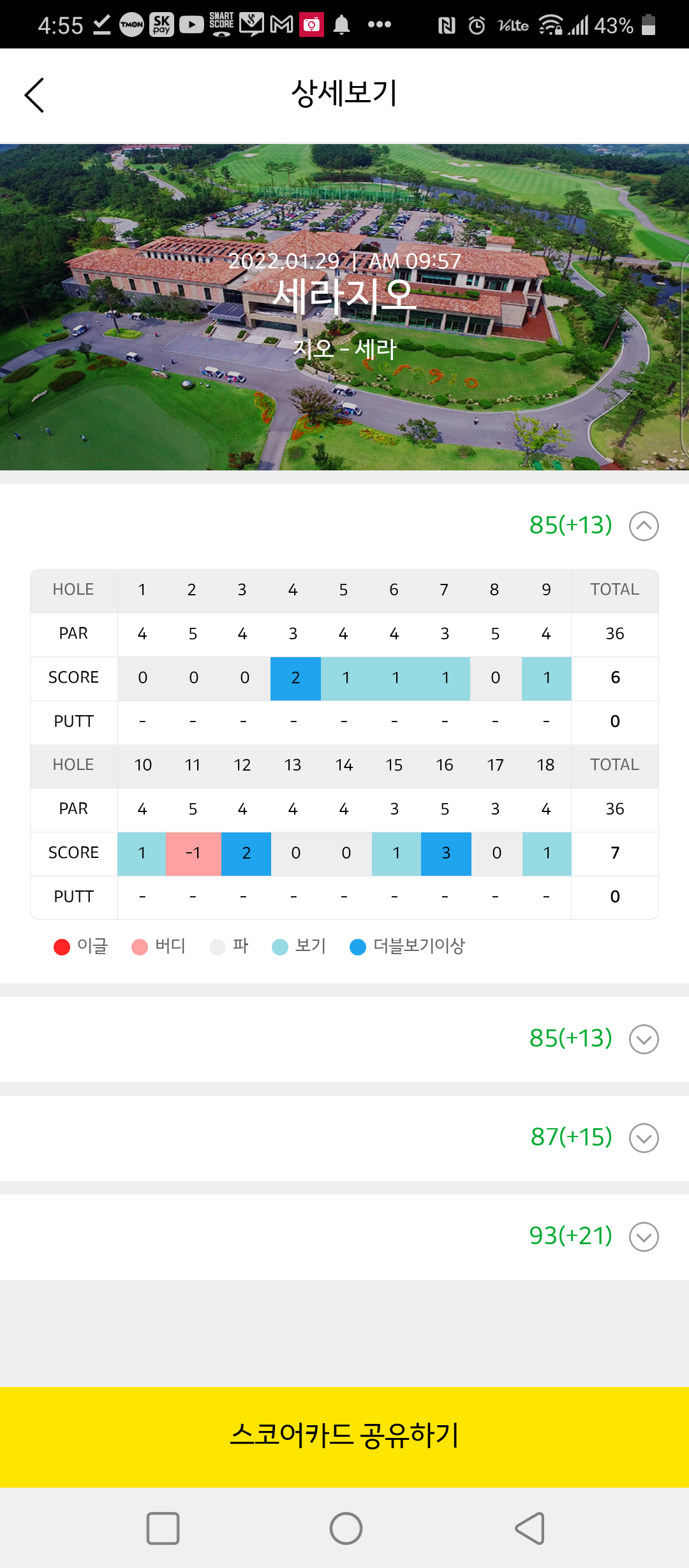 카카오 골프라 그런지 스코어카드도 카카오골프앱으로 볼 수 있습니다.