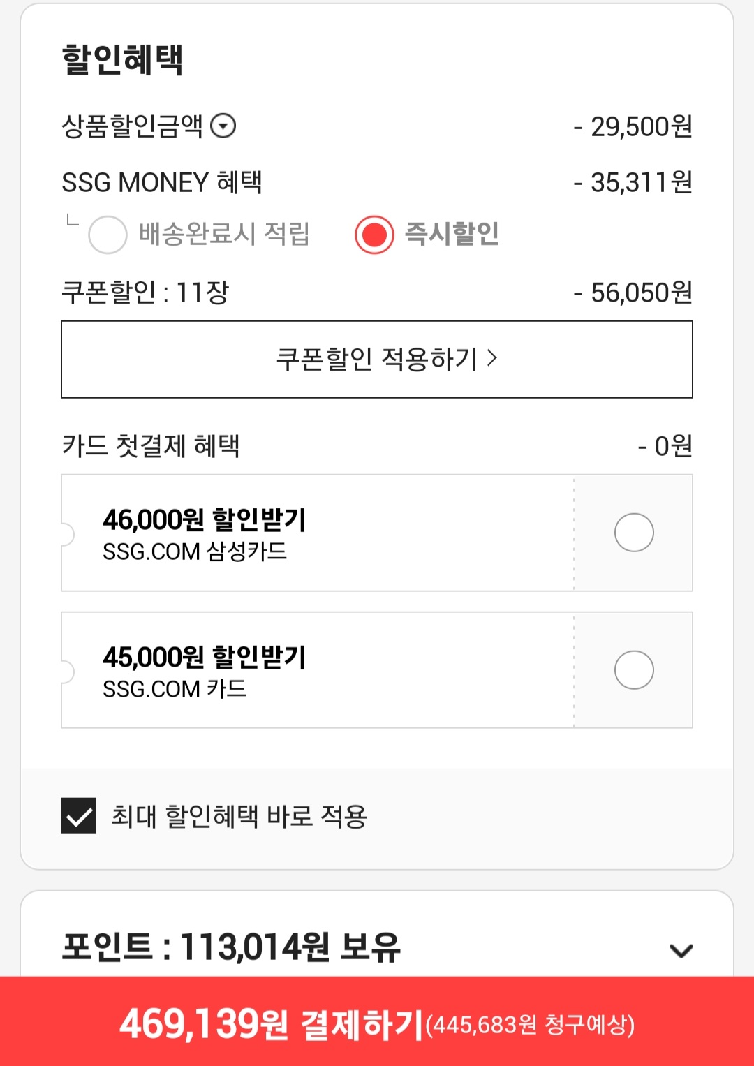 ssg삼성카드 말고 일반 삼성카드로 해도 동일해서 ssg삼성카드를 신규로 만들 필요는 없습니다. |