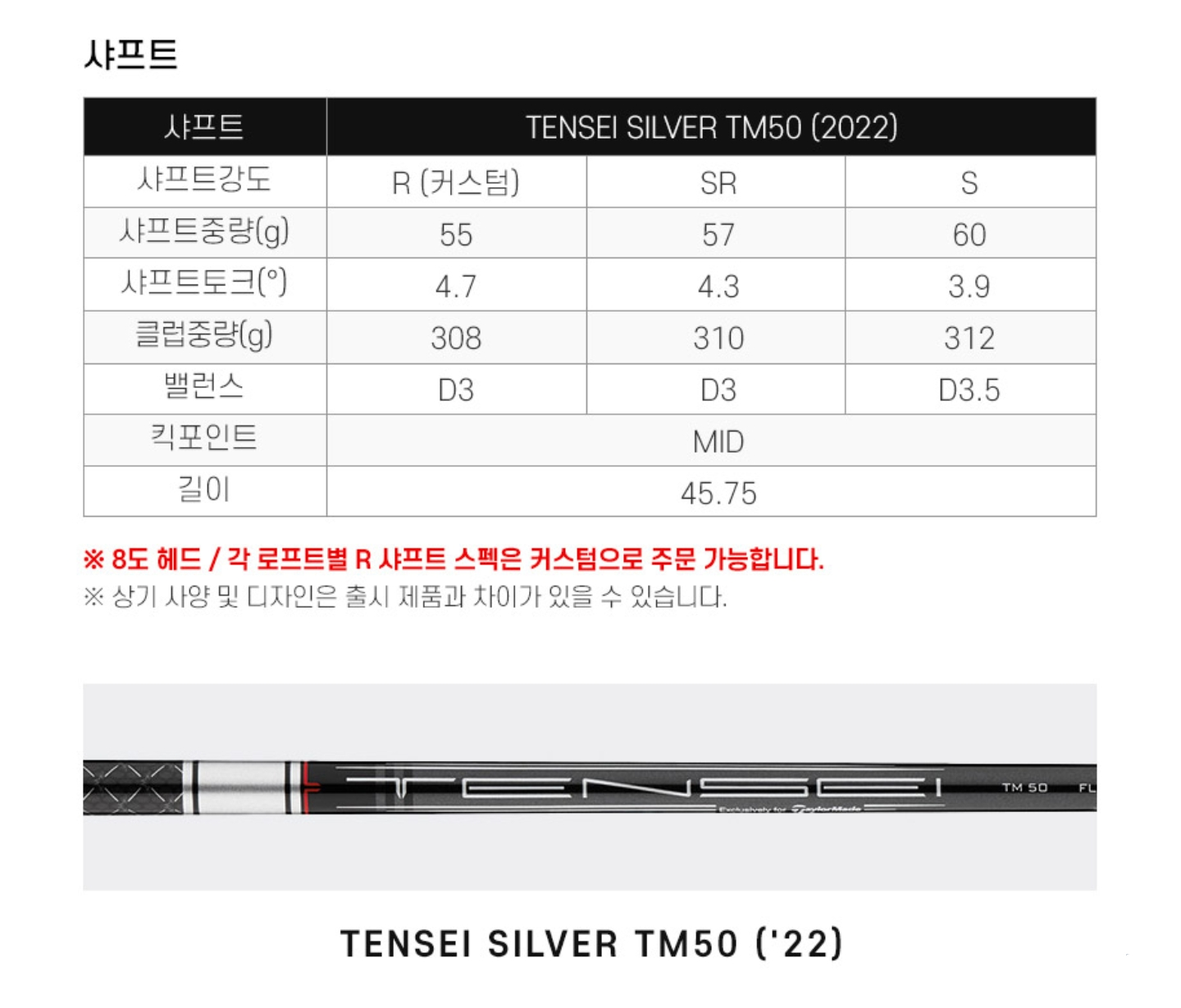 *참고로 스텔스 노멀과 스텔스 플러스는 샤프트 스펙이