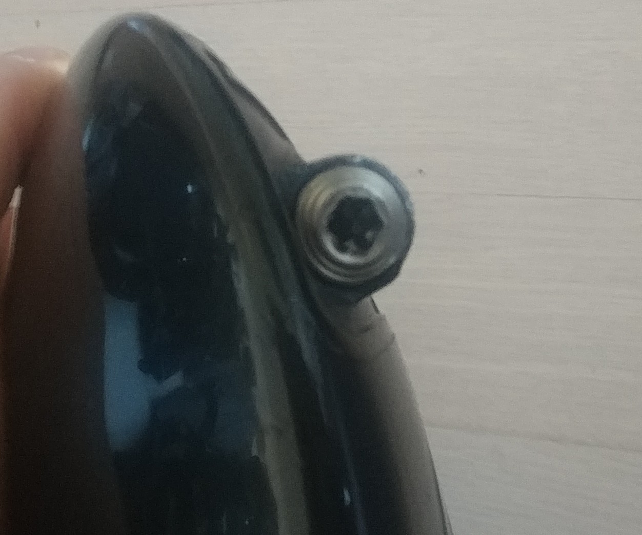 다시 닫아보려는데 타이틀 렌치가 딸깍딸깍거리면서 더이상 안 닫힘..자세히 보니 스윙시 바닥 찍으면서 나사 너트부위가 쓸리면서 틀어졌나보네요.