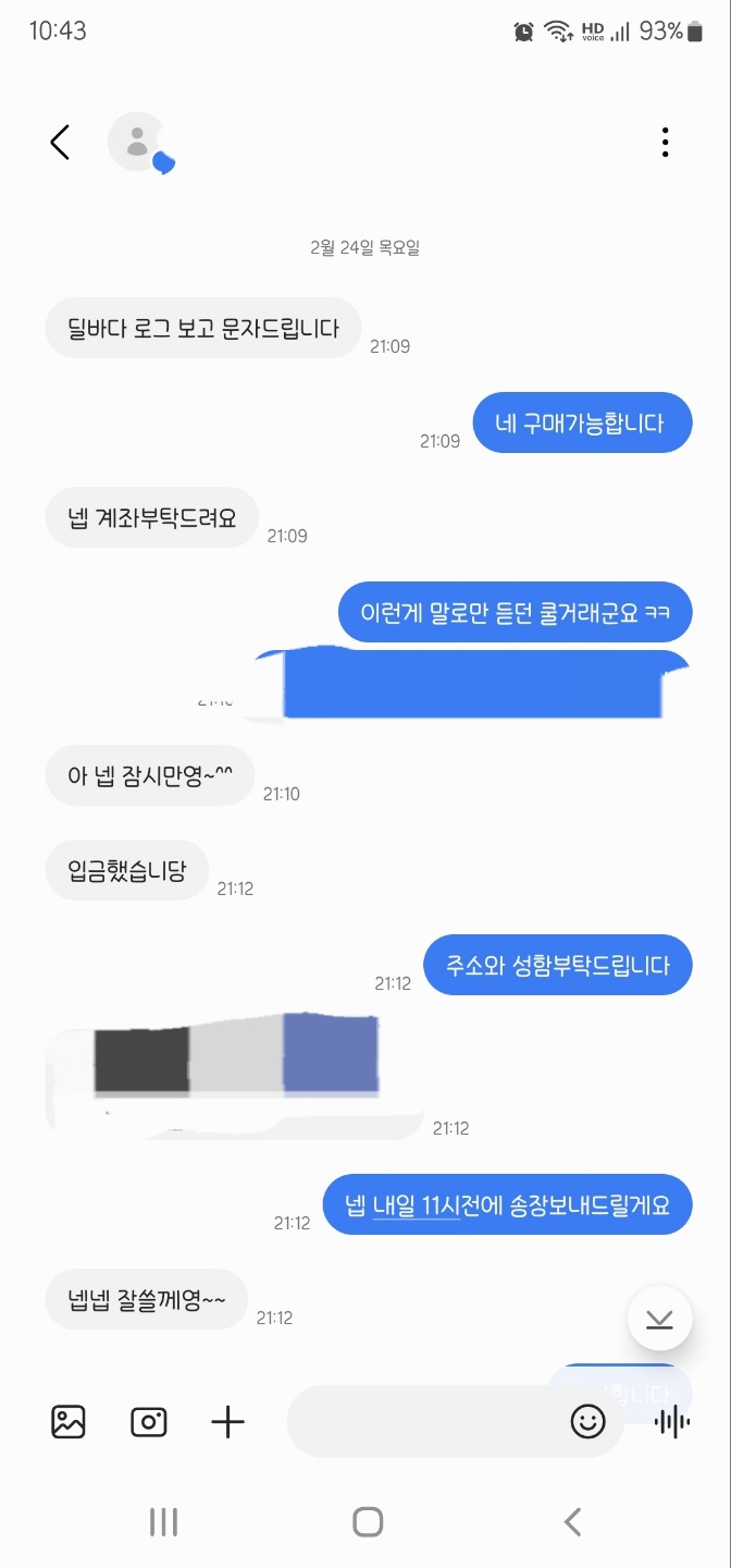 역시 진짜 구매하실분은 연락-->계좌--->주소 교환-->택배 발송의 테크트리가 진리인듯합니다..
