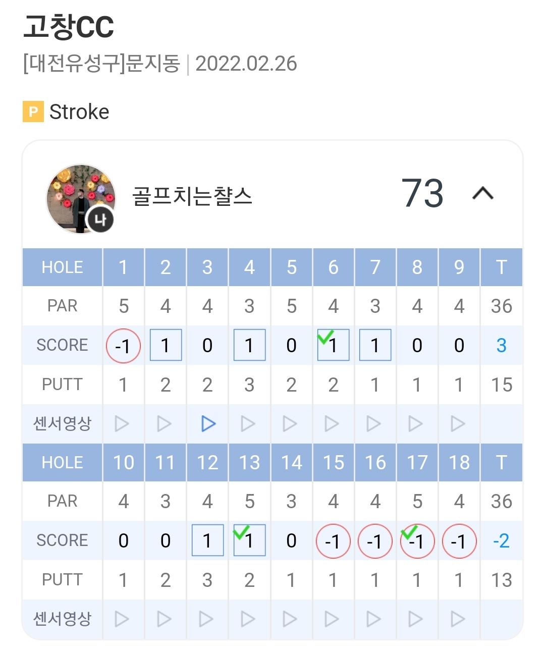 아직 10개월밖에 안된 골린인데 73타 싱글이라니 아직도 얼얼하네요;;;