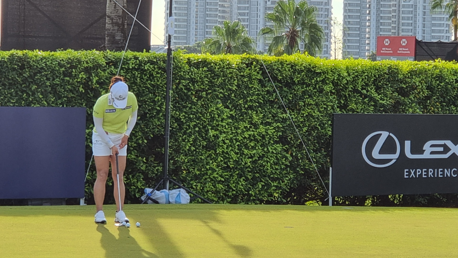 아 전 흰 타이틀 벙거지에 빨간 색 반팔에 검정 토십니다.ㅋ 작년엔 김효주 선수가 우승했었는데 올해도 한국선수가 우승했음 좋겠네요