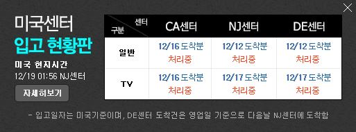 현재 캘리포니아 16일꺼 입고 처리중이고, 뉴저지랑 델라는 12일꺼 처리중입니다.