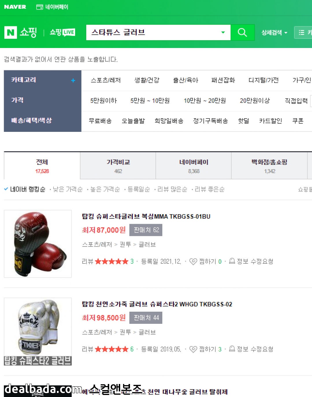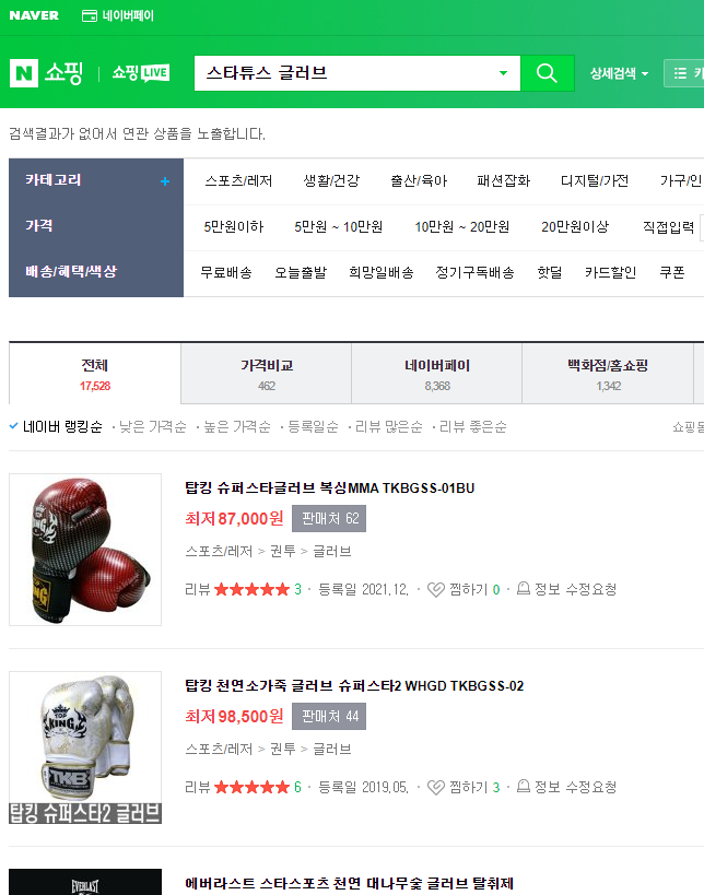 네이버에서 스타튜스 글러브로 검색하면 이렇게 떠요.