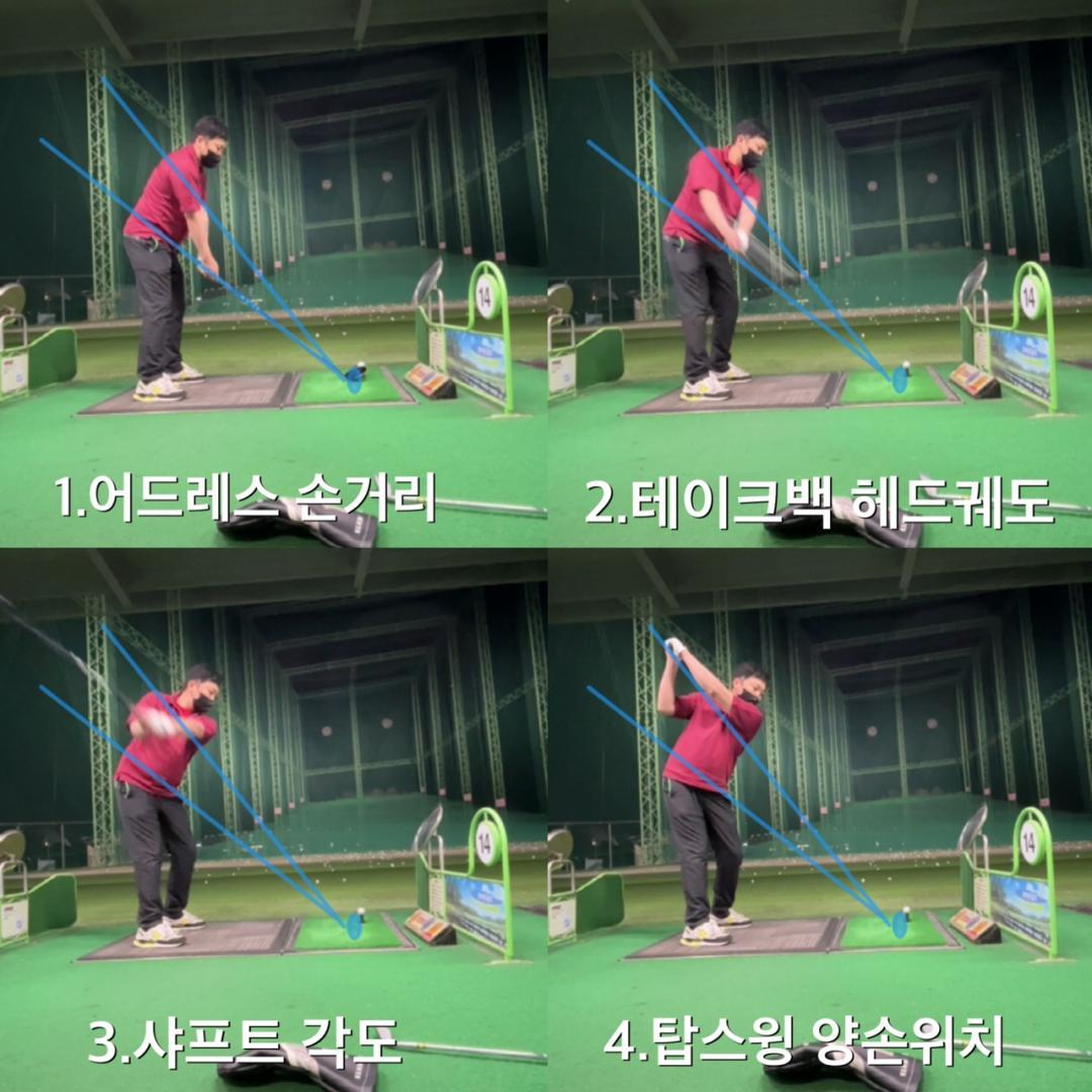 여기서 구질이 일정해지면 어드레스에서 헤드정렬을 조금씩얼라이먼트하면 좀더 일정한 구질이 나오게 됩니다.