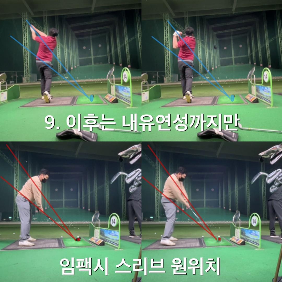 스리브 지나가는 위치만 신경쓰고 , 어드레스시 몸의 오픈양을 조절해가면서 연습 피드백을 받습니다.