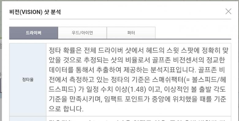 드라이버 티샷 정타율이고 스매시팩터 기준으로 정타 인식해요 |