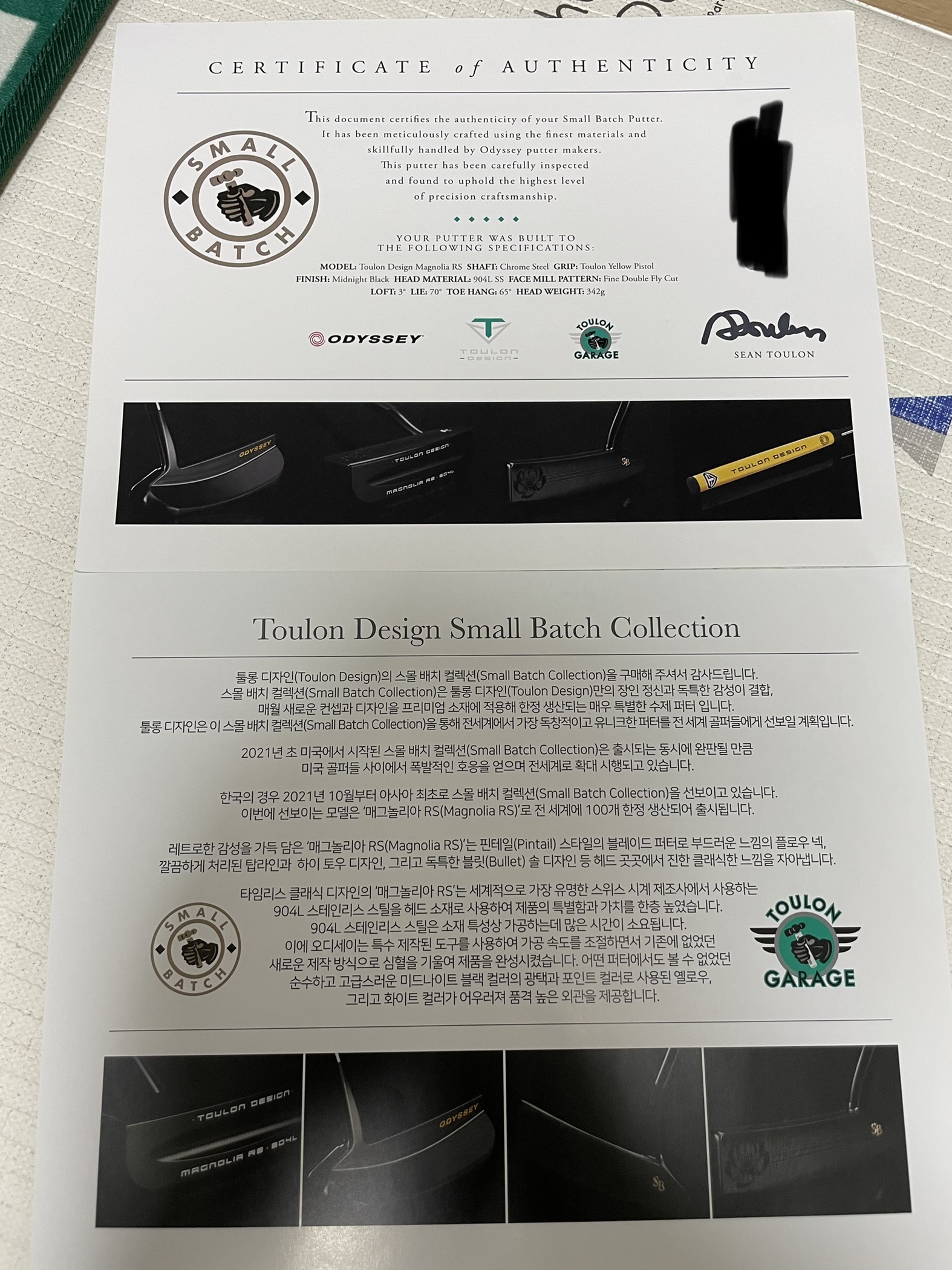 처음으로 증서 있는 퍼터도 만져보고,