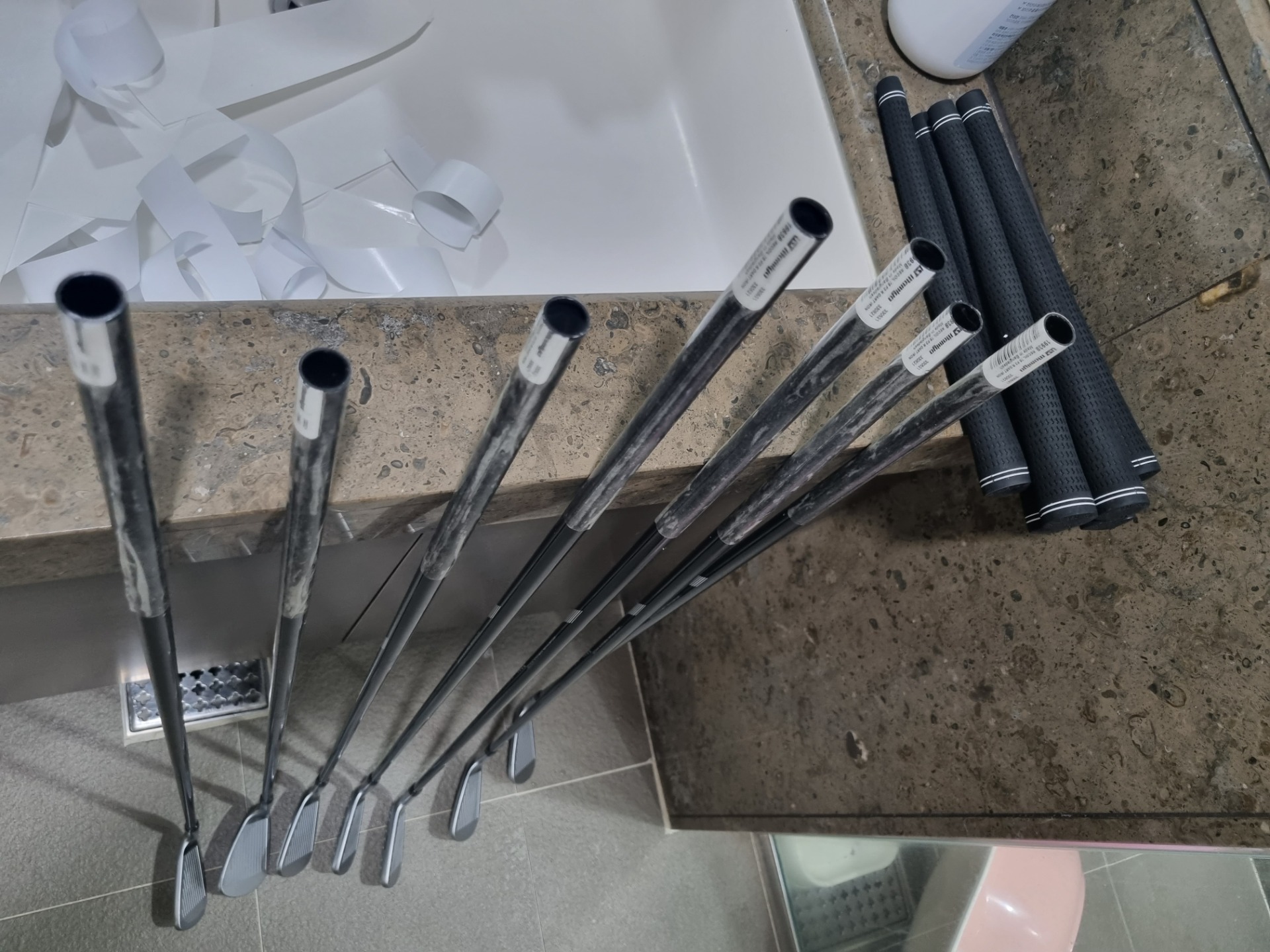 나이키 2009년 vr forged 이제서야 첨으로 셀프교체하는데 나이키에서 테잎을 좋은거로 썼는지 종이재질이 아닌 실리콘 재질 같은게 매우 쉽게 떨어지네요. 매디폼같은 느낌?