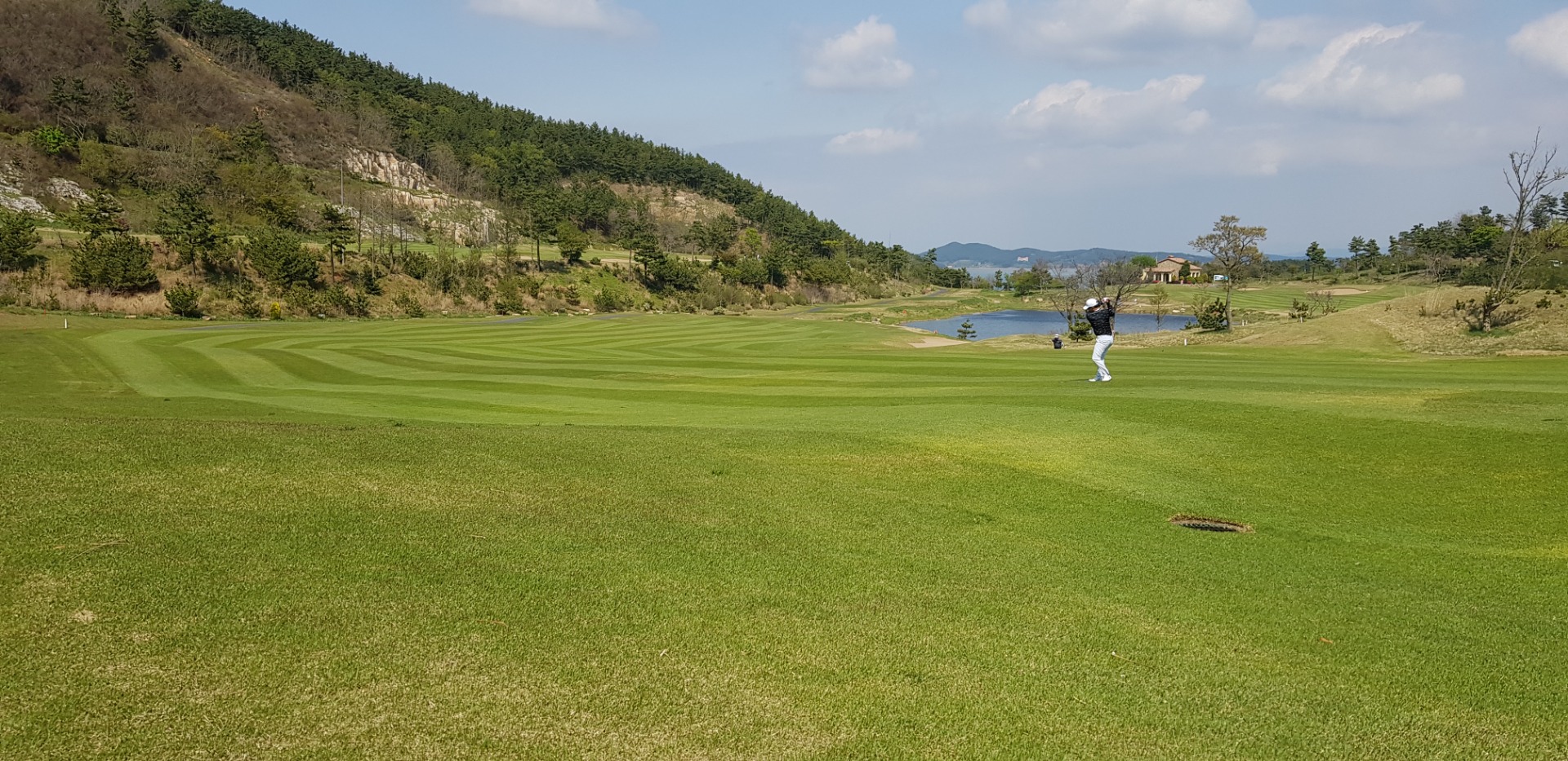 페어웨이 8.5/10 조선잔디 웬만큼 올라왔습니다. 디봇 좀 있습니다.