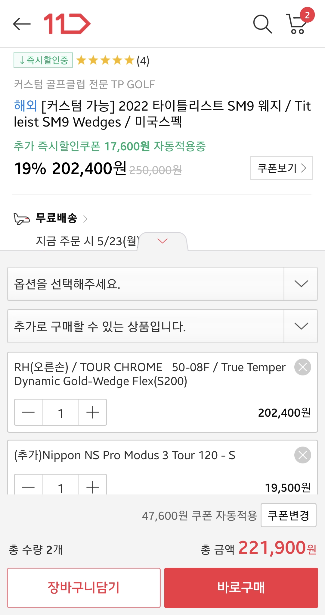 모든 헤드에 거의 모든 샤프트가 특주 가능하고. 빠르고 싼거 아닌가 합니다.