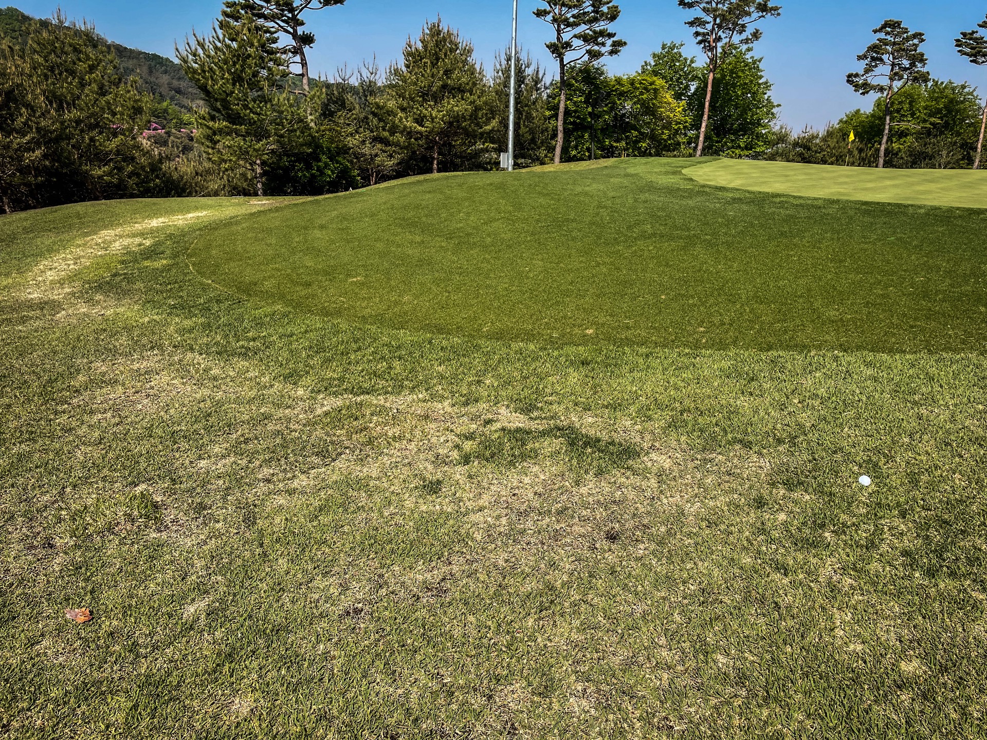 그린주변은 수리지였던 홀이 꽤 존재하고..엣지 부근 상태가 좋지 않았던 홀도 좀 있습니다. 피치마크 관리는 잘되어있어 내가 만든 피치마크 아니면 찾아보기 힘듭니다.