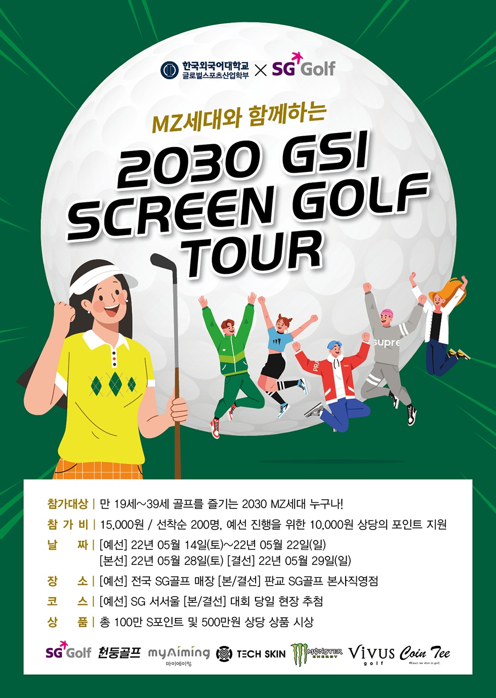 저희는 이번에 <2030 GSI Screengolf Tour>라는 이름으로 MZ세대를 위한 스크린 골프 대회를 개최할 예정입니다!!