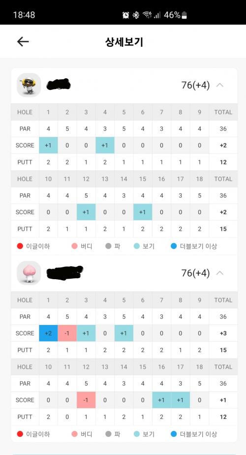 전 스코어 유지..집사람은 저보다 +2...
