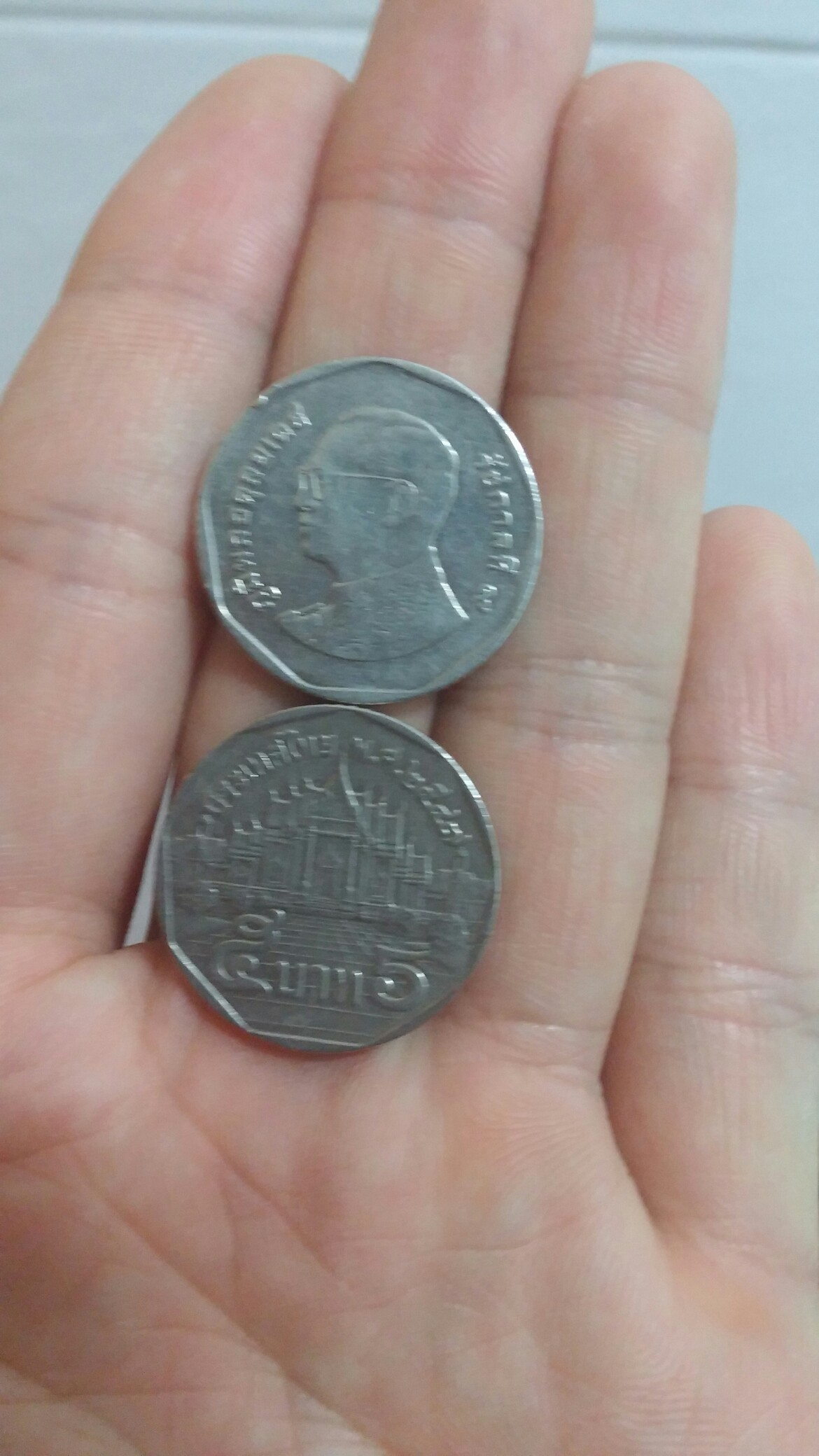 아... 바트네요. 서거한 태국왕의 5바트 동전입니다. | ||