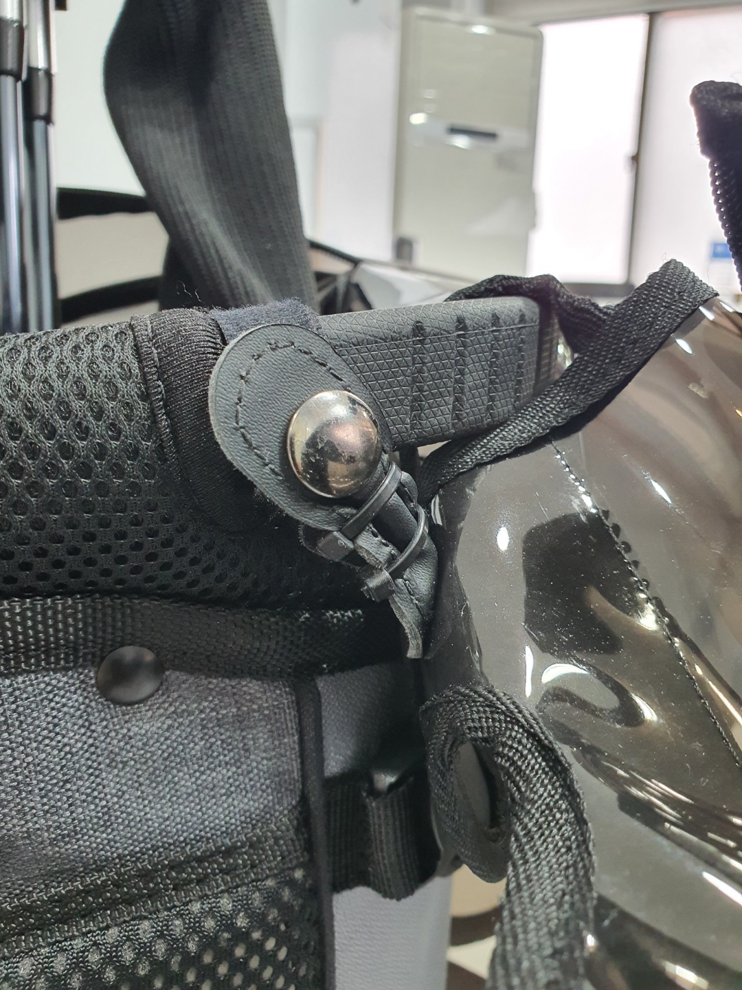 전선정리용 찍찍이 + 케이블타이 (찍찍이를 손잡이에 감아서 떼고 붙힘)