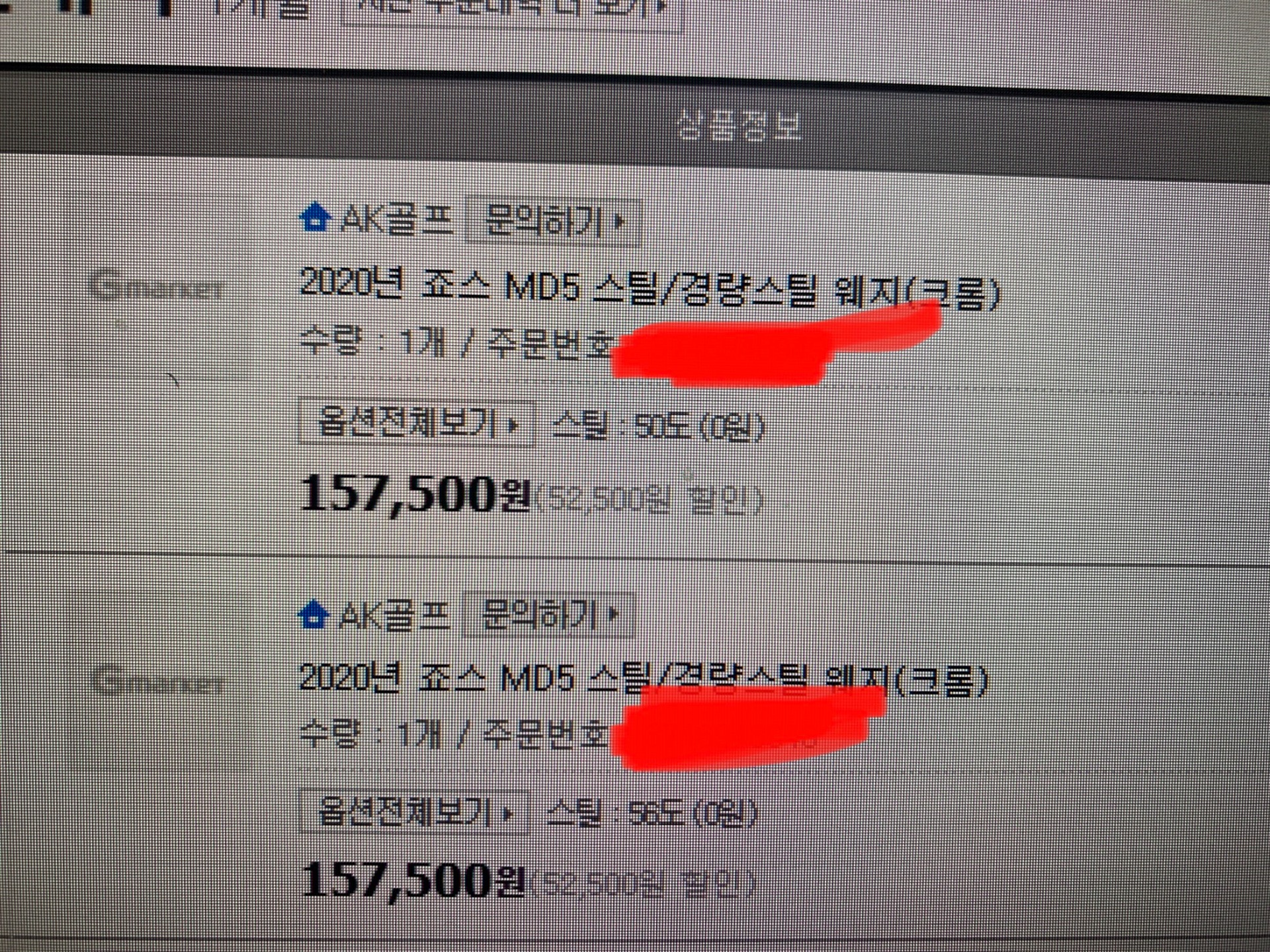 협력사 웨지 40프로 들어 갔다는....3주 전에 샀는뎅..ㅡㅜ |