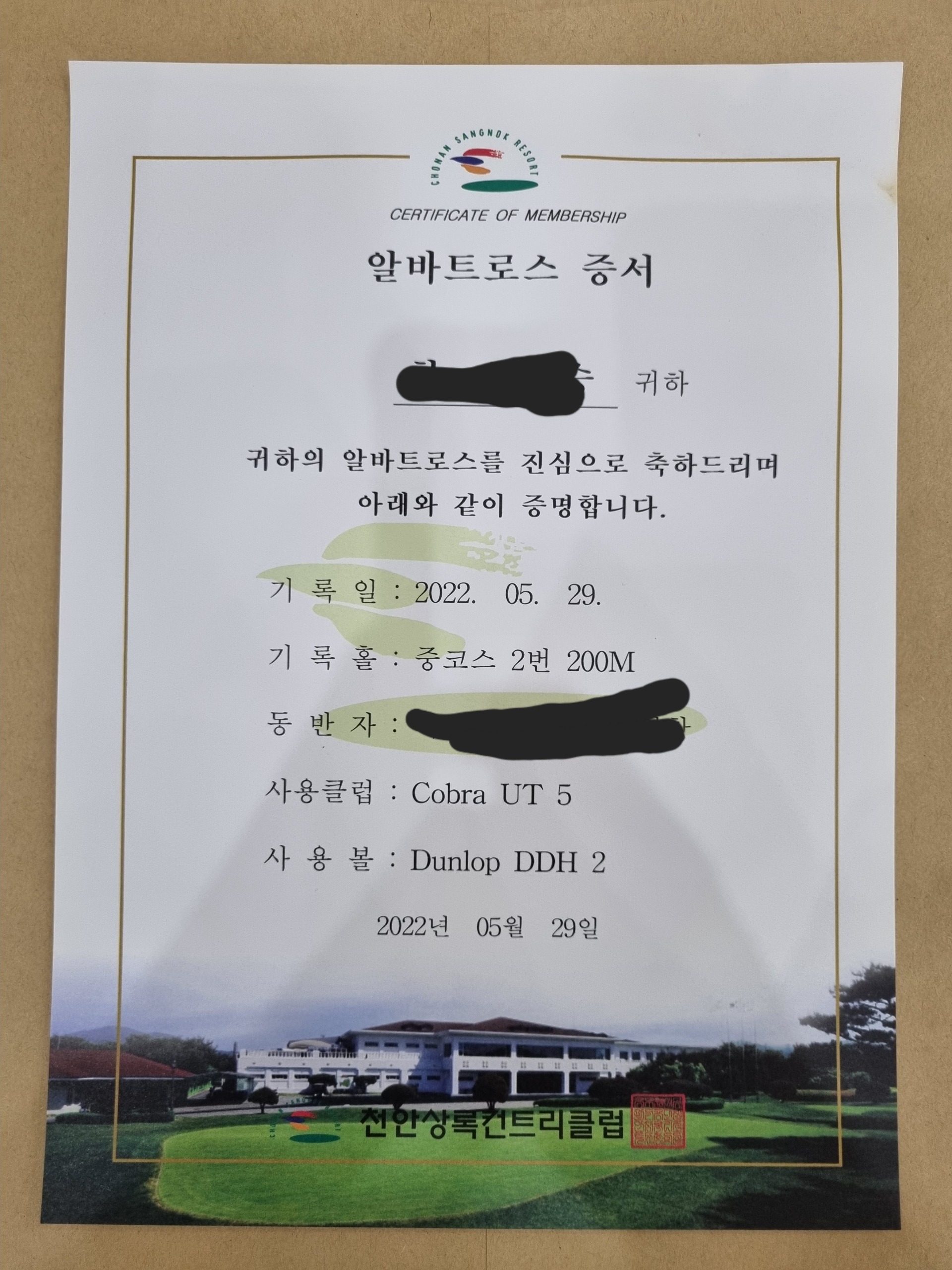 천안상록 생기고 중코스 2번 최초 알바트로스라고 하네요. 너무 기분 좋습니다.