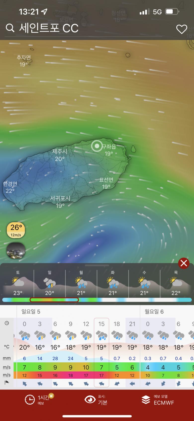 내일 일요일에 강수량 많고 번개도 친다고합니다. 아마도 라운딩 어려우실것같은데요.