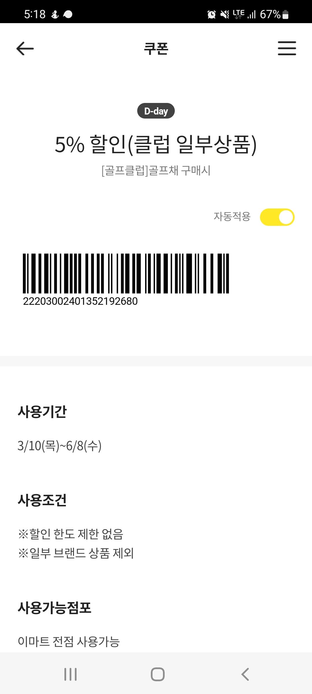 이마트 쿠폰입니다. 5%