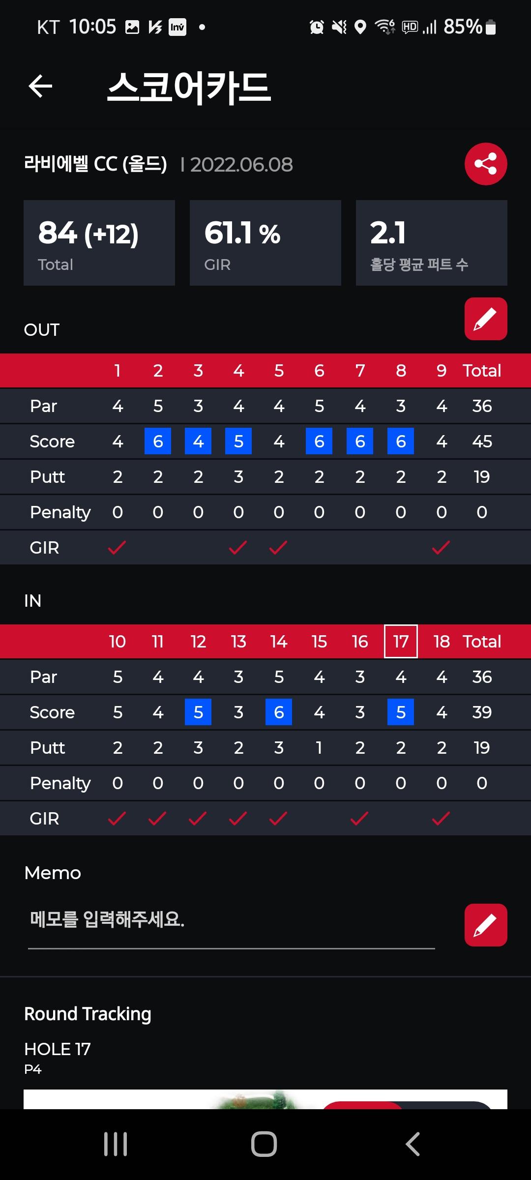 (캐디가 스마트스코어는 한두개는 덜 적어 주더군요. ㅎㅎㅎ)