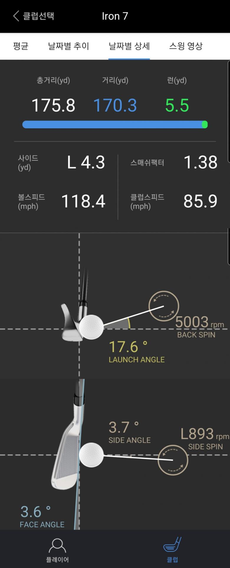 35도 7번 아이언 런치앵글 25도네요...분발해야겠습니다 ㅠㅜ