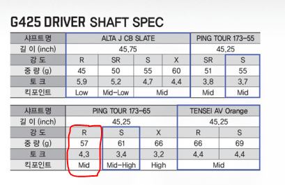 현재 사용하는 클럽도 G400+173-65R 이라 샤프트 스펙만 따지고 보면 크게 차이가 없는데.