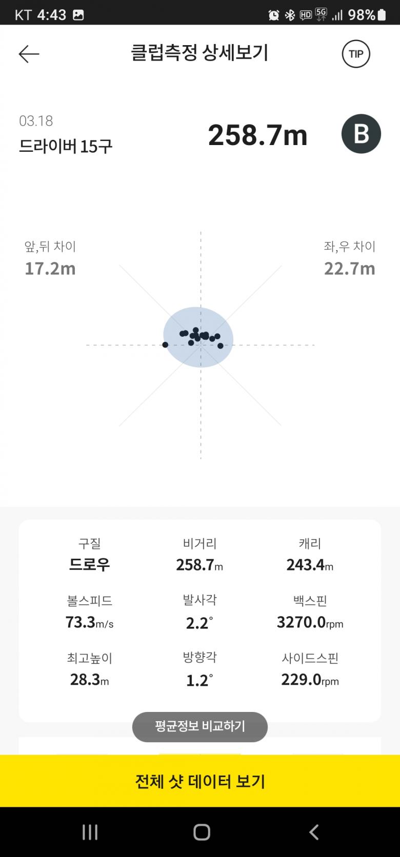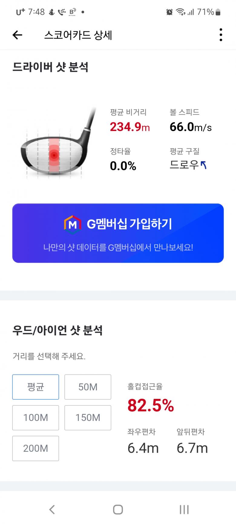 골프존 평균 66.9 237미터 나오네요 |