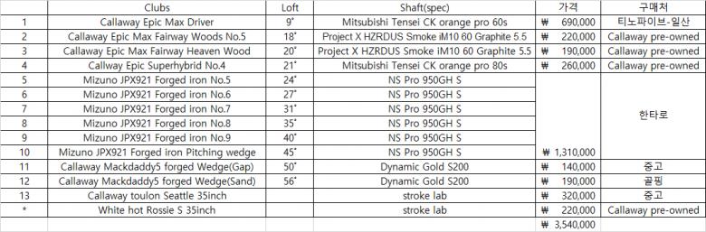 저를 포함해서 3년 사이에 골프 시작한 주변분들의 다수가 이렇게 구성 하더라구요.