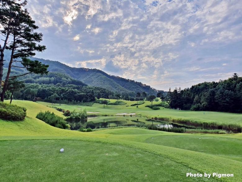 거기 레이크 코스 8번홀은 헤저드를 가로질러 페어웨이에 올리던지