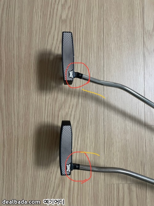 그래서 제가 가지고 있는 퍼터랑 비교를 해 봤더니 넥(?) 부분 각도가 더 많이 기울어져 있네요