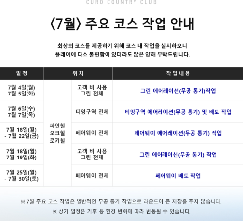 해당 주중에 페어웨이 배토작업? 한다고 적혀있네요. 배토작업은 전코스 다하는데 왜 파인 in 코스는 동시간대 25만이고.. 아이스크림도 오크, 로키 이용자만 준다하고 ,, 뭐지;;;