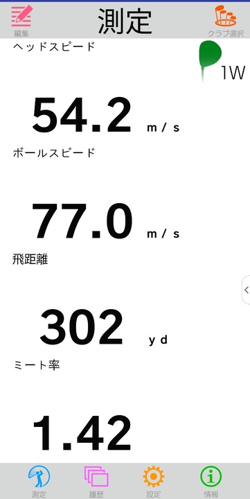 일어로 되어있어서 맨위부터 헤드스피드, 볼스피드, 거리(야드), 스매쉬팩터 입니다.