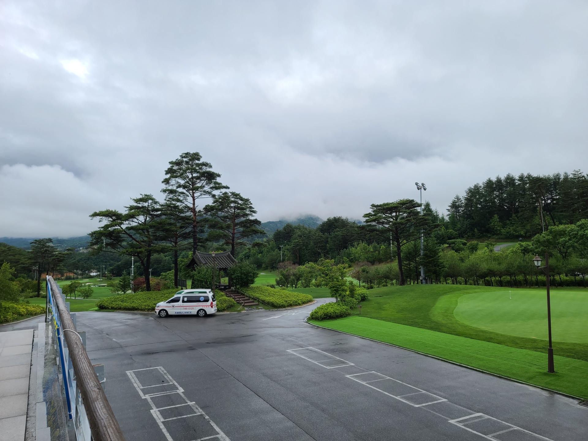 후반에 비가 너무 많이 와서 사람들과 마지막 2~3홀 패스하고 복잡해지기전에 씻고 밥먹자는 이야기가 나옵니다.