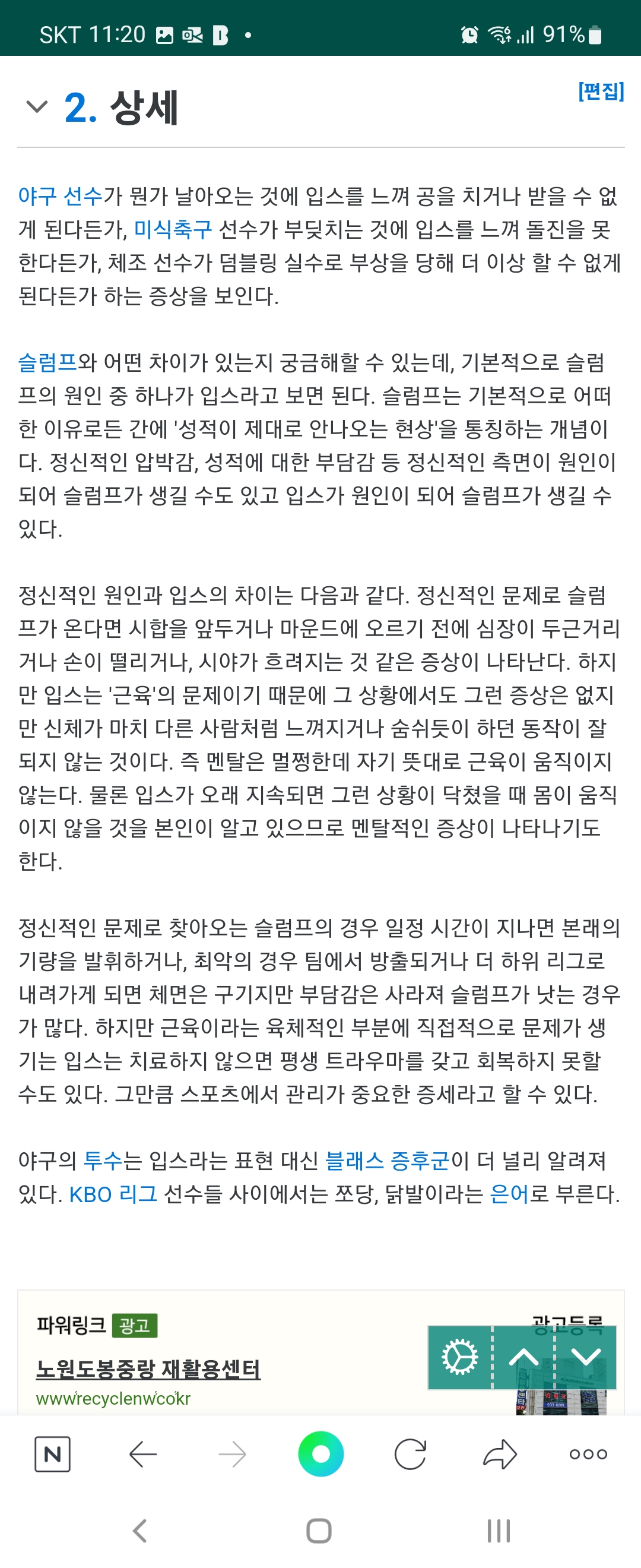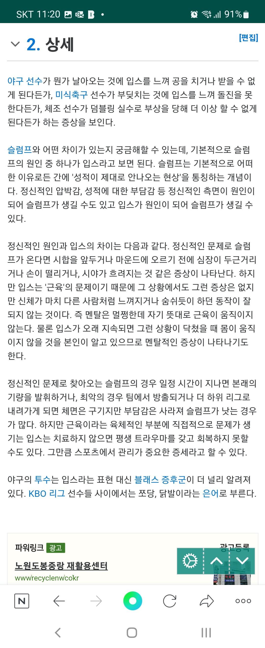 그냥 연습안하고 컨디션 안좋아서 공을 잘 못마추는데 입스라라고 하는게 이상하다라는 것이죠 .