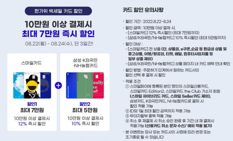 이번 지마켓 빅세일 카드 할인 한도 7만원, 1회만 제공되나요?