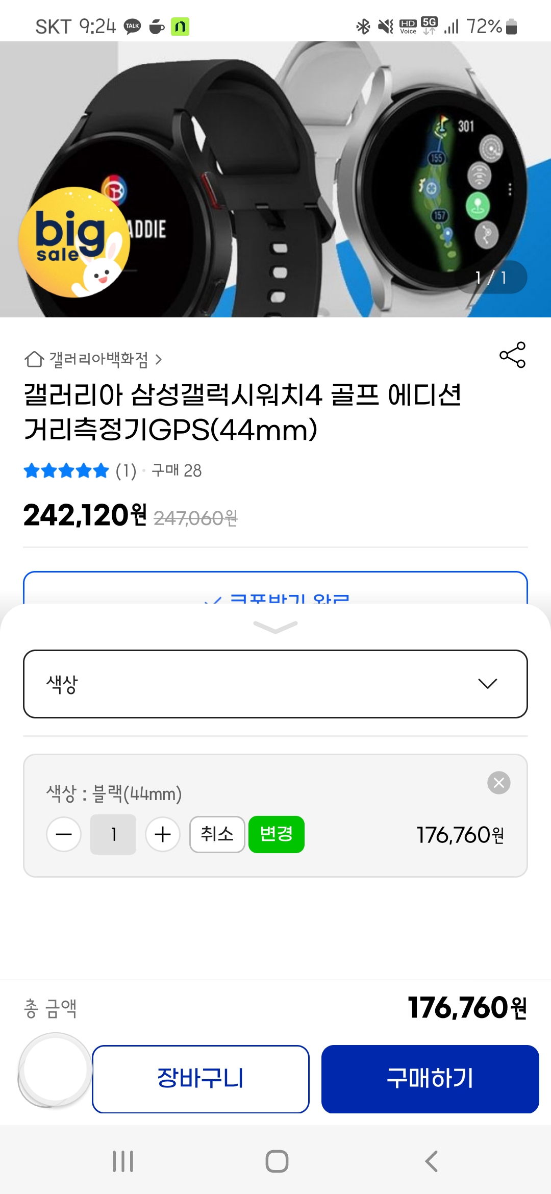 어제 갤워치5 일반 결제했었는데 바로 갈아탔네요 ㅎㅎ | ||