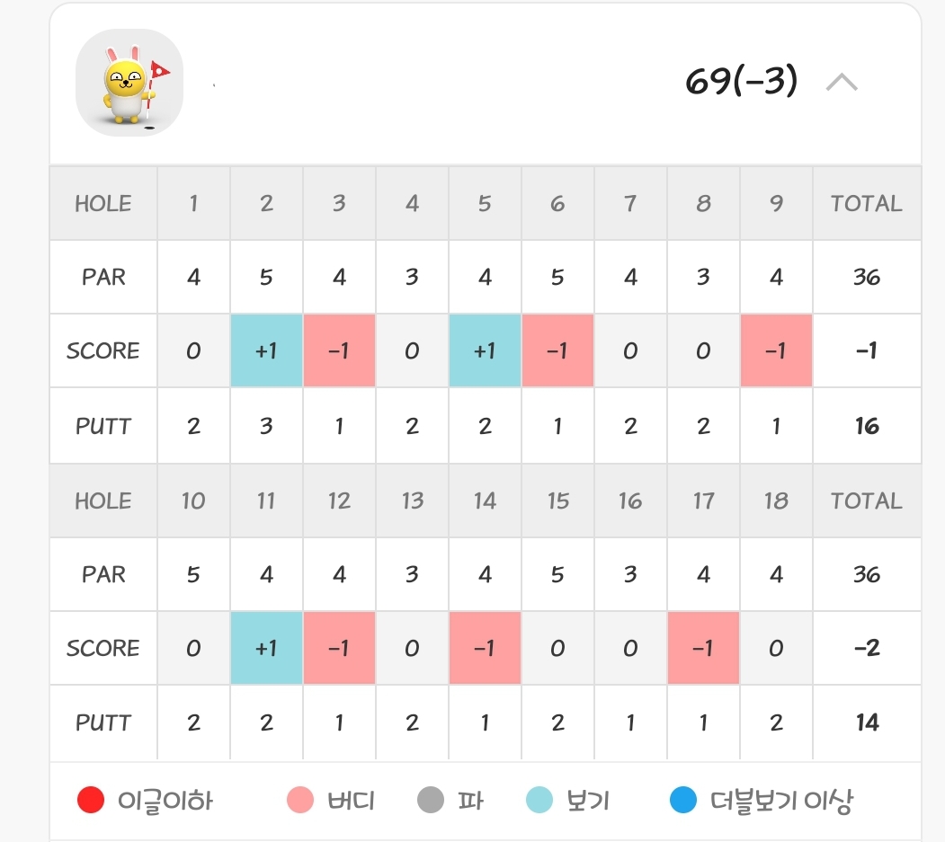 카카오가 골프존에 비해 스핀도 훨씬 잘 읽어 슬라이스도 많이 나고 그린이 빠른데 성적은 잘나오네요.
