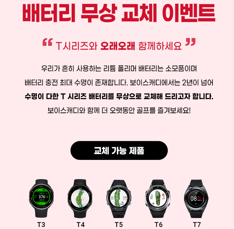 배터리 교체 뿐 아니라 T시리즈나 거리 측정기 반납하면 할인 이벤트도 하고 있네요 ㅎ