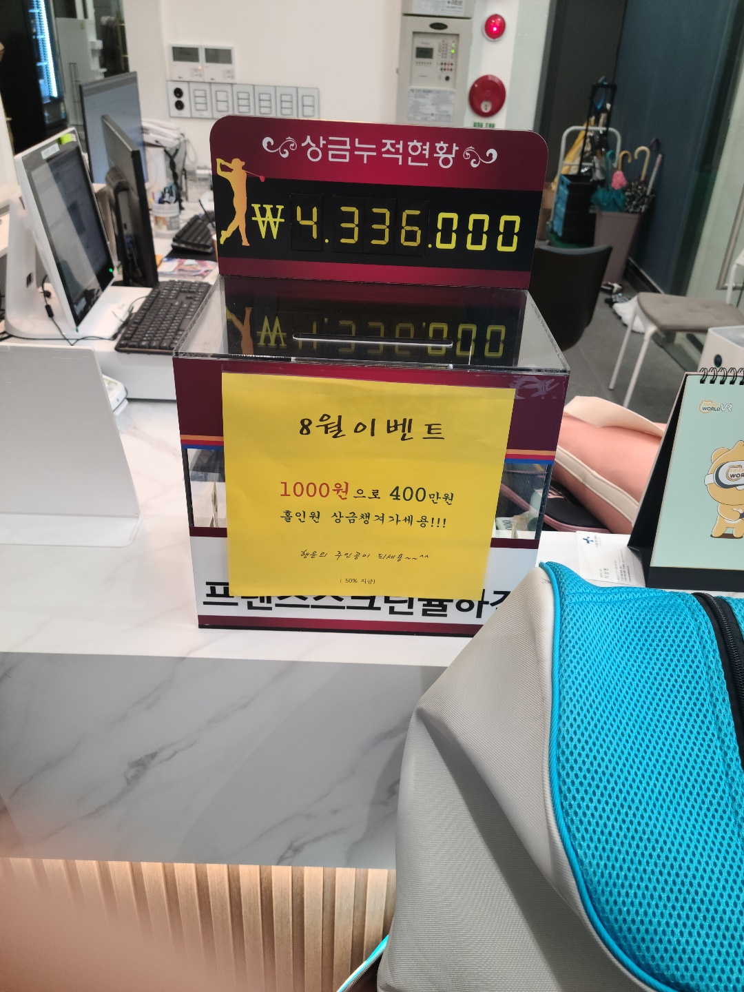홀인원 이벤트의 계속 적인 유지를 위해서 돈통에 50퍼센트 남깁니다. | ||
