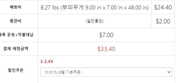 미국내 공항 연계 배송 수수료가 1불 + 중형 화물 경동택배 배송비가 5불이었는데 조금 올랐나 봅니다. |