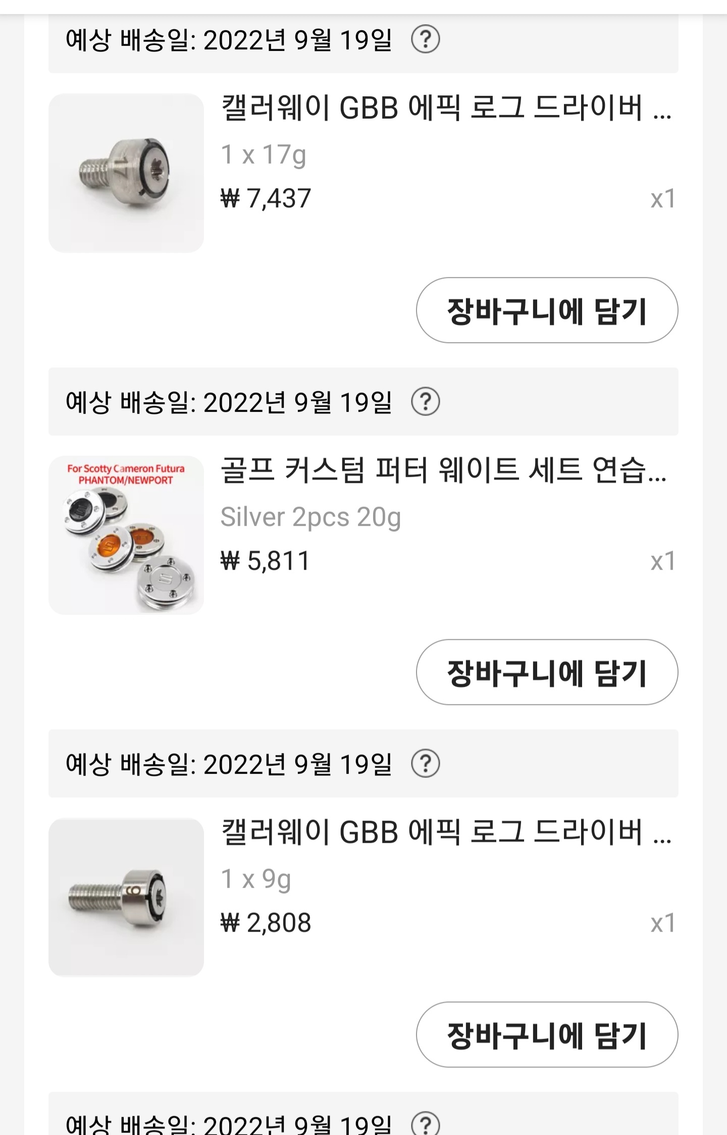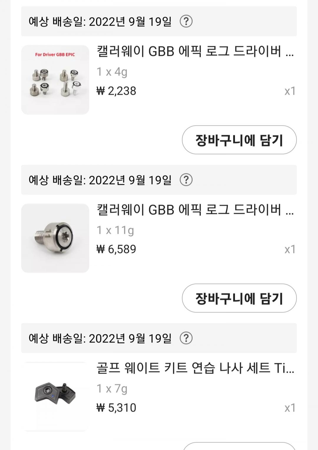 그러다가 에픽스피드 3번우드와 헤븐우드 무게추도 덩달아서 사고.....