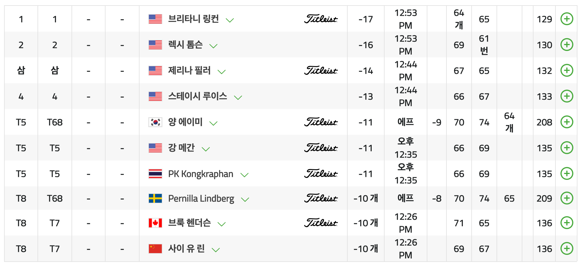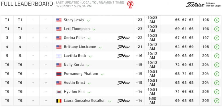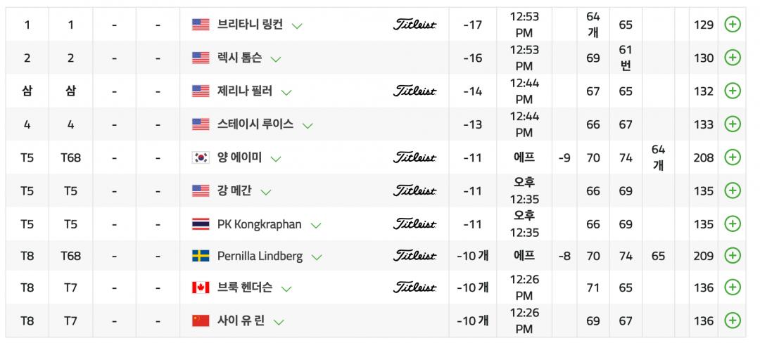 3라운드까지 렉시 톰슨이랑 스테이시 루이스가 23언더로 공동 1위네요. 코스가 쉬운 편인가보죠? ㄷㄷㄷ