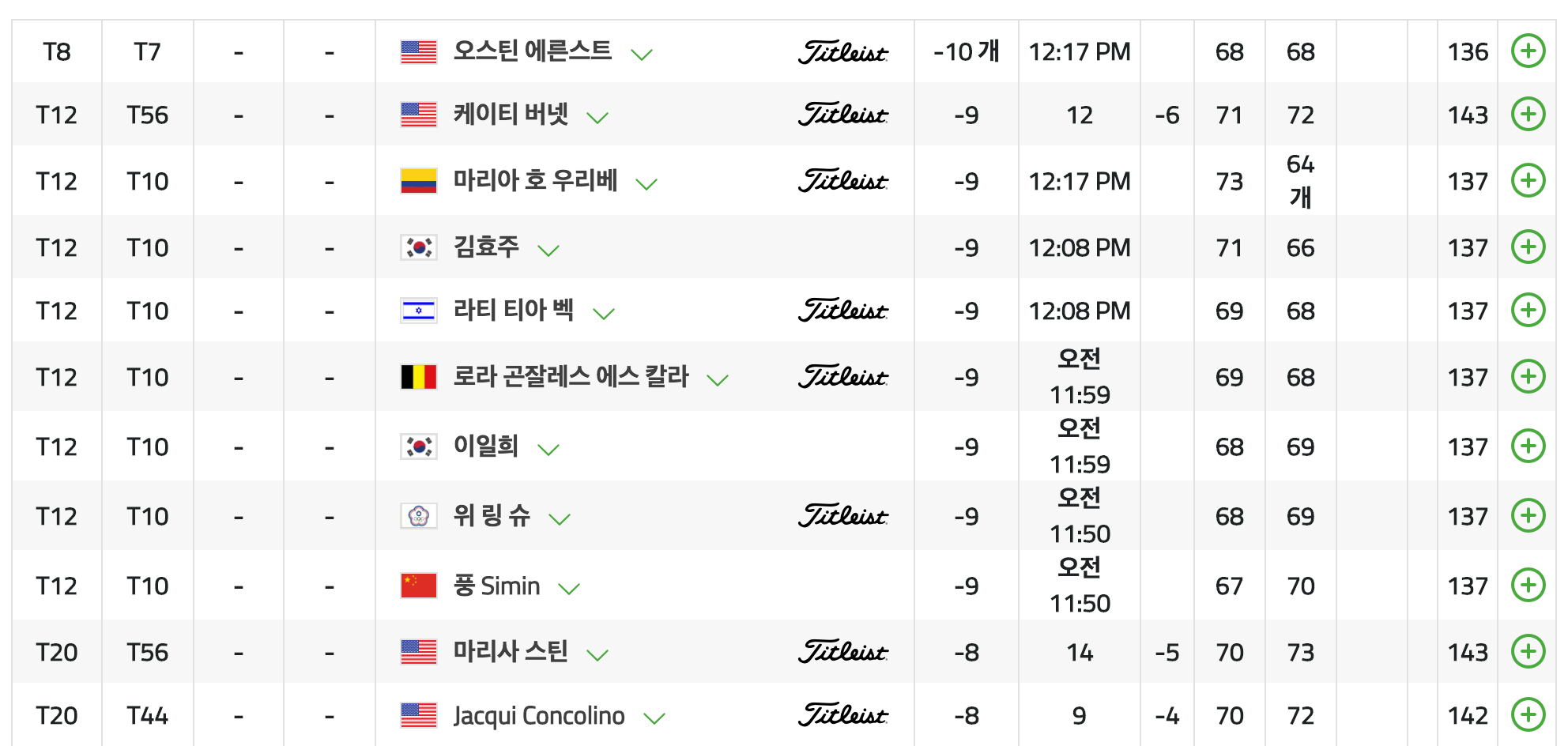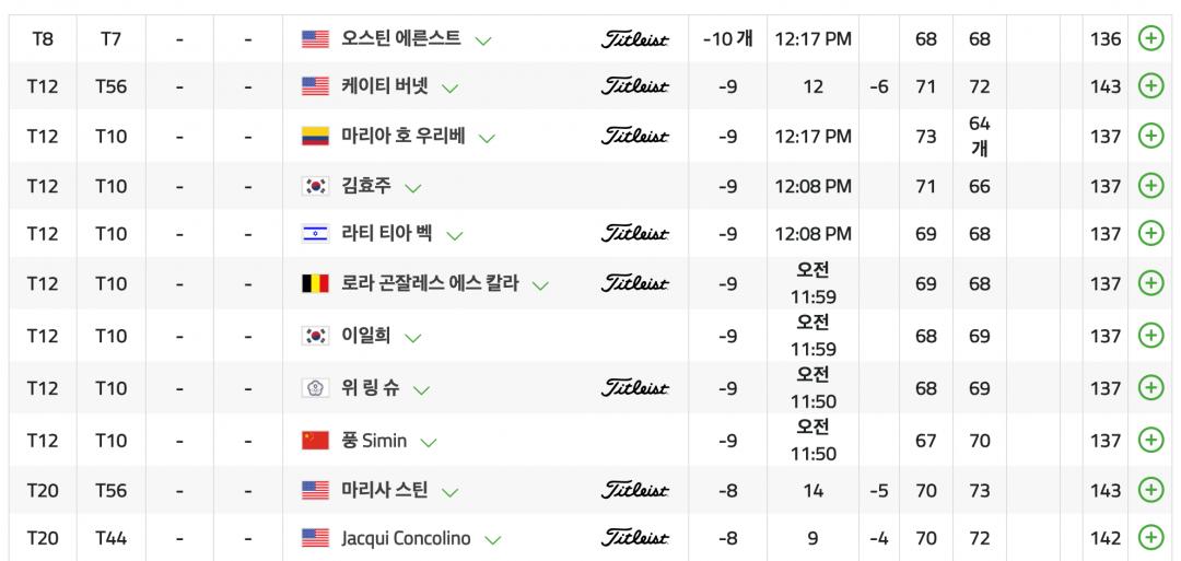 자고 일어났더니 순위가 요동을 쳤군요. 양희영은 9언어 몰아쳤는데 19위 김효주는 후반에 잘해서 다시 9위... 중계를 역시 봐야하는데 T.T |