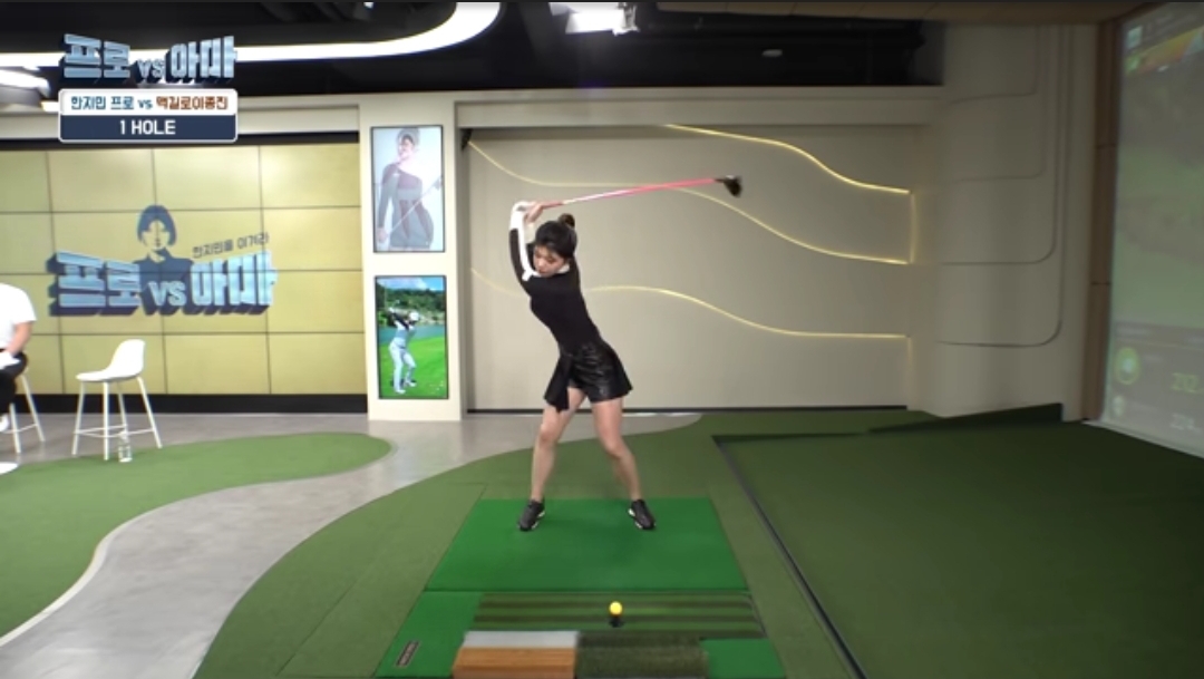 한지민 프로 스윙 폼이 이쁜건 아니라. 백스윙때 약간은 우측으로 밀리는 모습이 보입니다. | ||