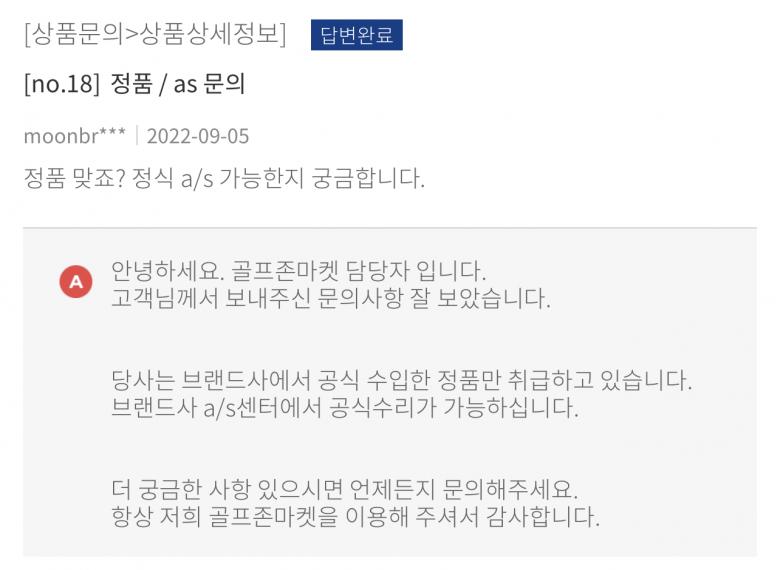 병행 수입제품이라고 하는데 드래곤골프에서 AS가능하고 해외로 AS보낸다는데..